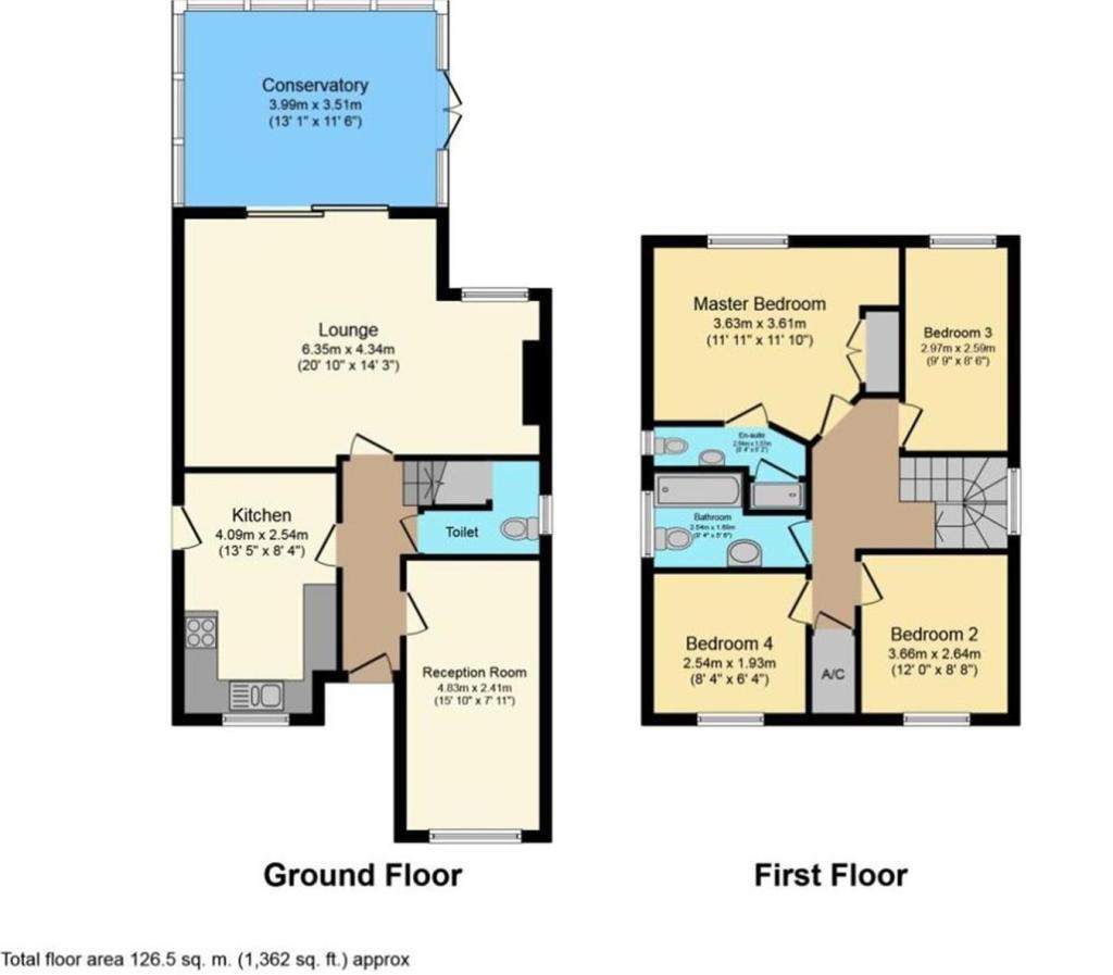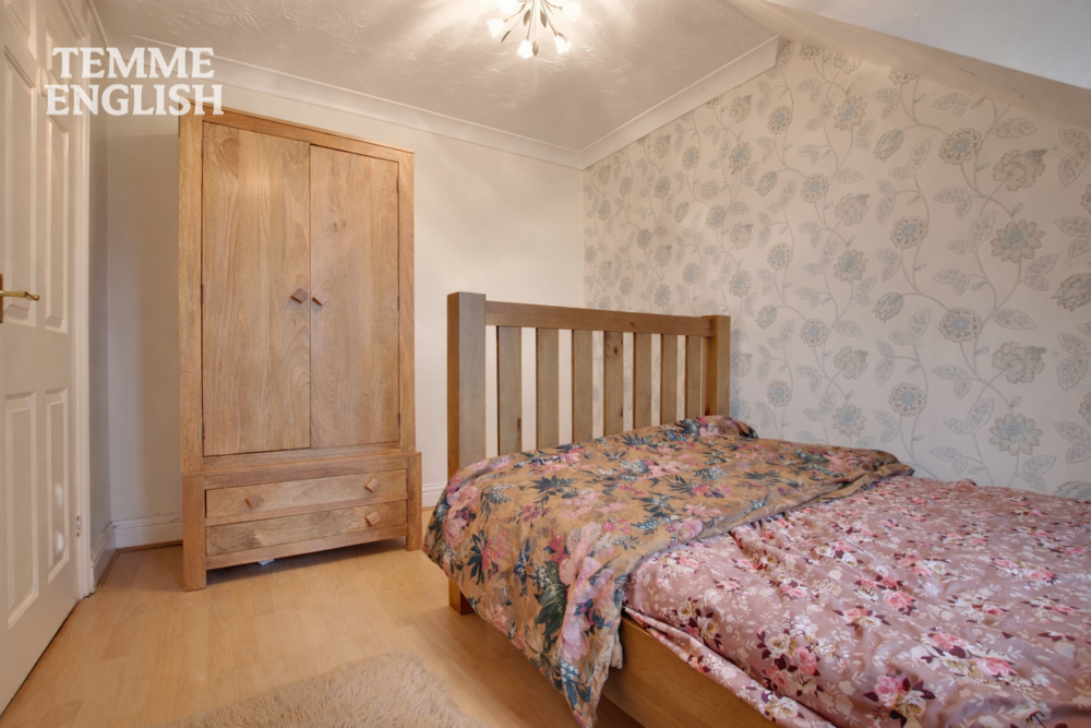 Upstairs, the property offers three double bedrooms and a well-proportioned single bedroom, alongside a neat and tidy family bathroom. The main bedroom benefits from its own ensuite shower room, adding further convenience for modern family living.