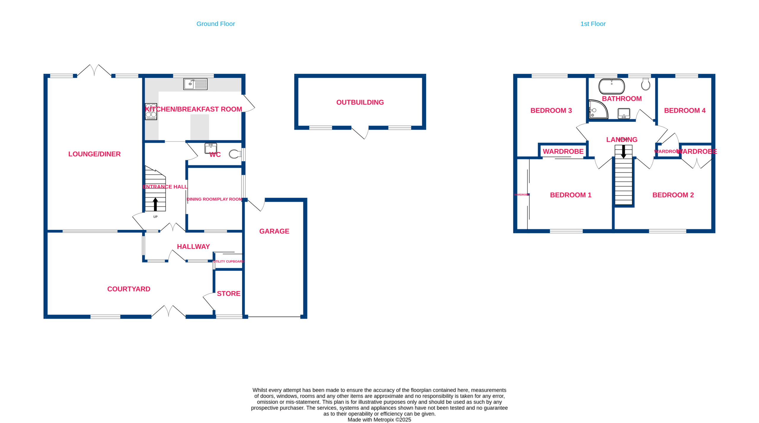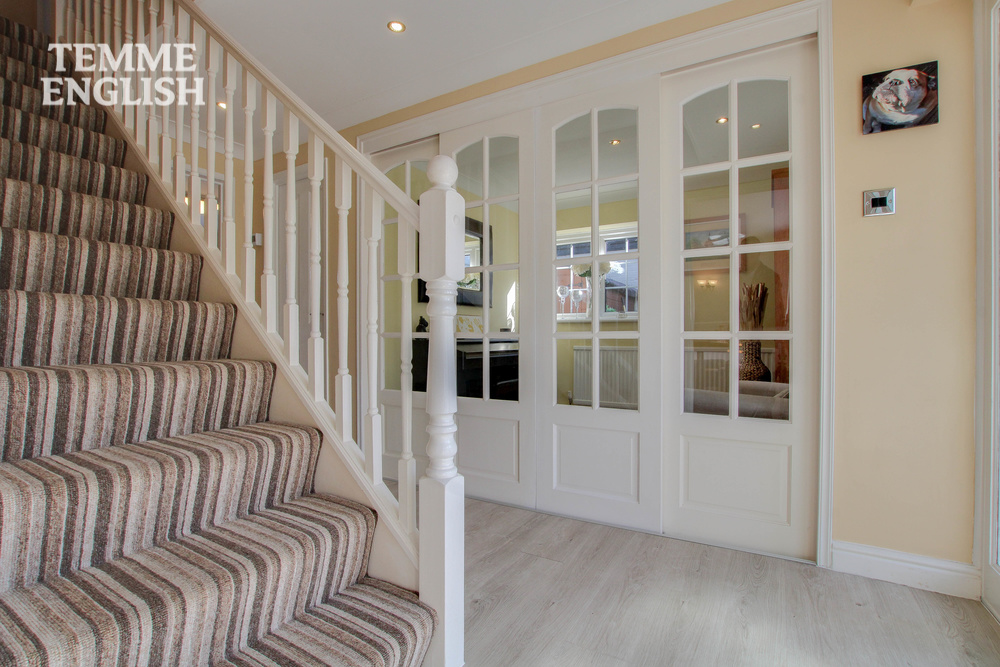 Upstairs continues to impress, offering a stunning four piece family bathroom suite with a sleek free standing bathtub and a power shower. All four bedrooms are genuine doubles providing plenty of space and fitted storage, with the primary bedroom being a true showstopper complete with two sets of built in mirrored wardrobes.