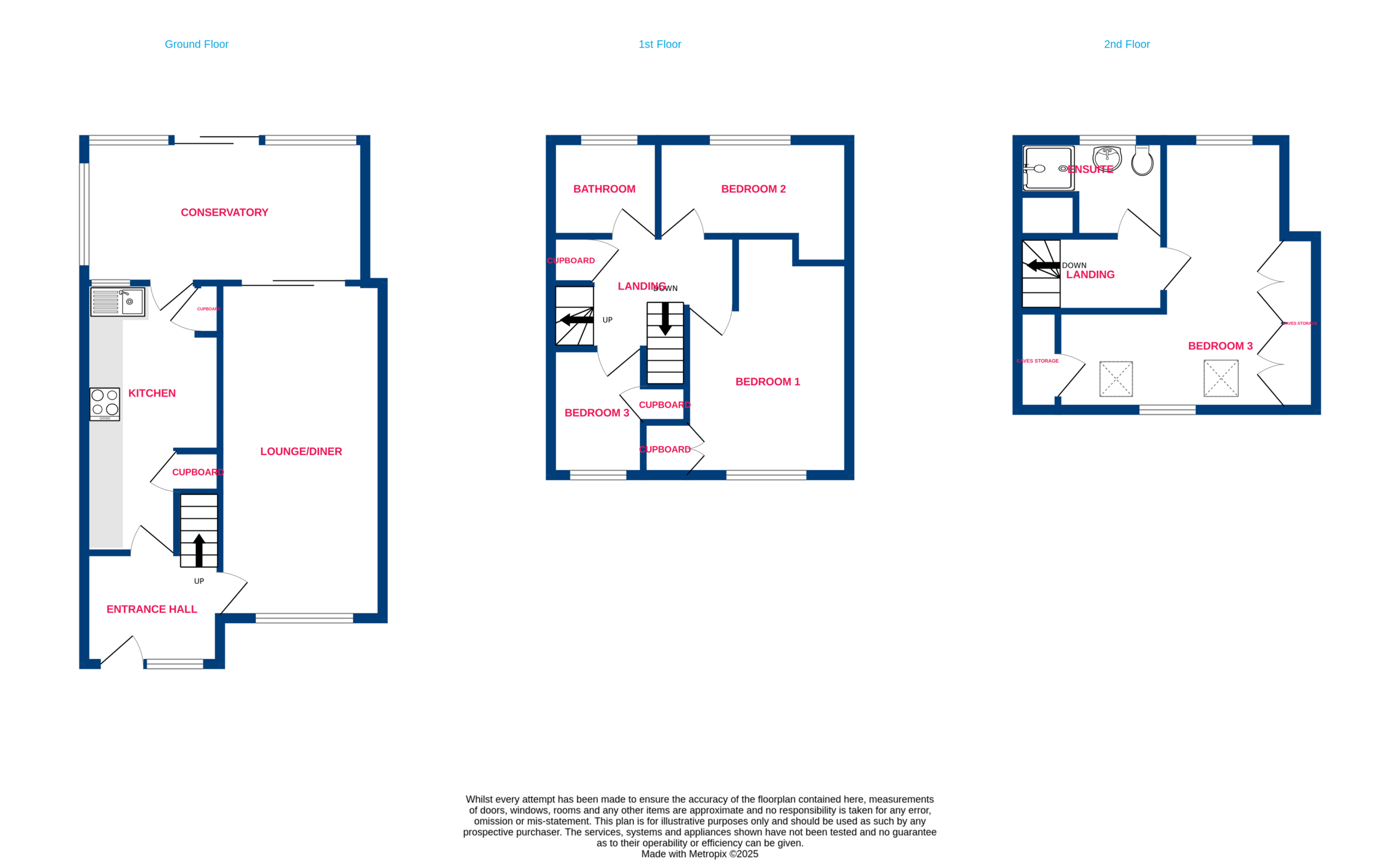 The first floor offers a modern family bathroom with shower over bath, two generous double bedrooms, and a further single bedroom complete with built-in storage.