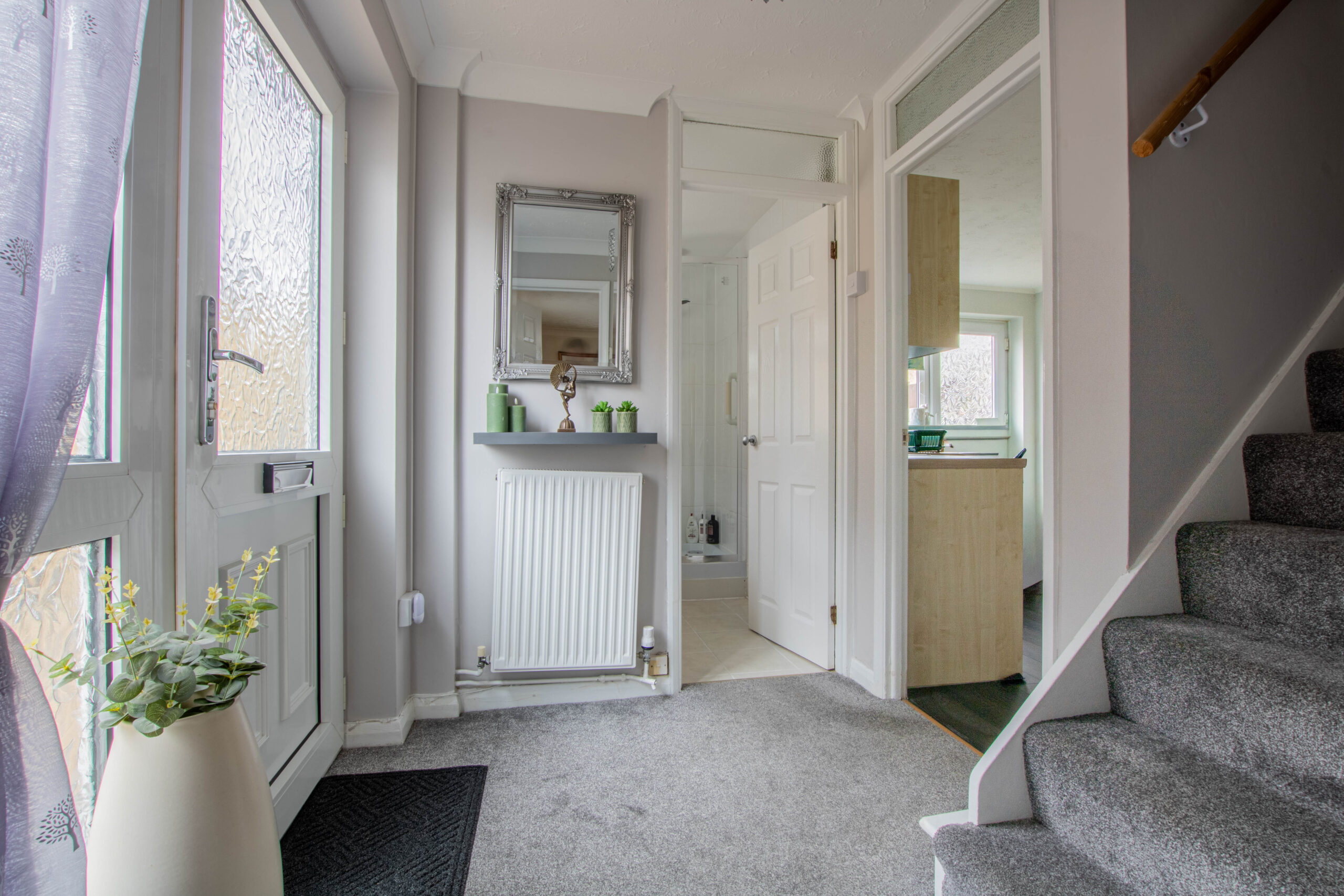 This two DOUBLE bedroom, semi detached home offers a fantastic opportunity for a first time buyer or young family to step onto the property ladder. Featuring modern décor throughout beginning in the spacious entrance hallway. You are greeted with a modern, fully tiled, shower room comprising of fitted shower cubicle with shower head over, low level W/C, obscure double glazing and wash hand basin with fitted storage under. The kitchen requires no work, featuring ample work surface over a variety of cupboards/drawers, tiled surround above worktops, fitted oven with hob/hood over and further space for washing machine. Fitted under stair kitchen storage can also be found. The lounge is to the front and benefits from large double glazing to front and side aspect offering ample light throughout.