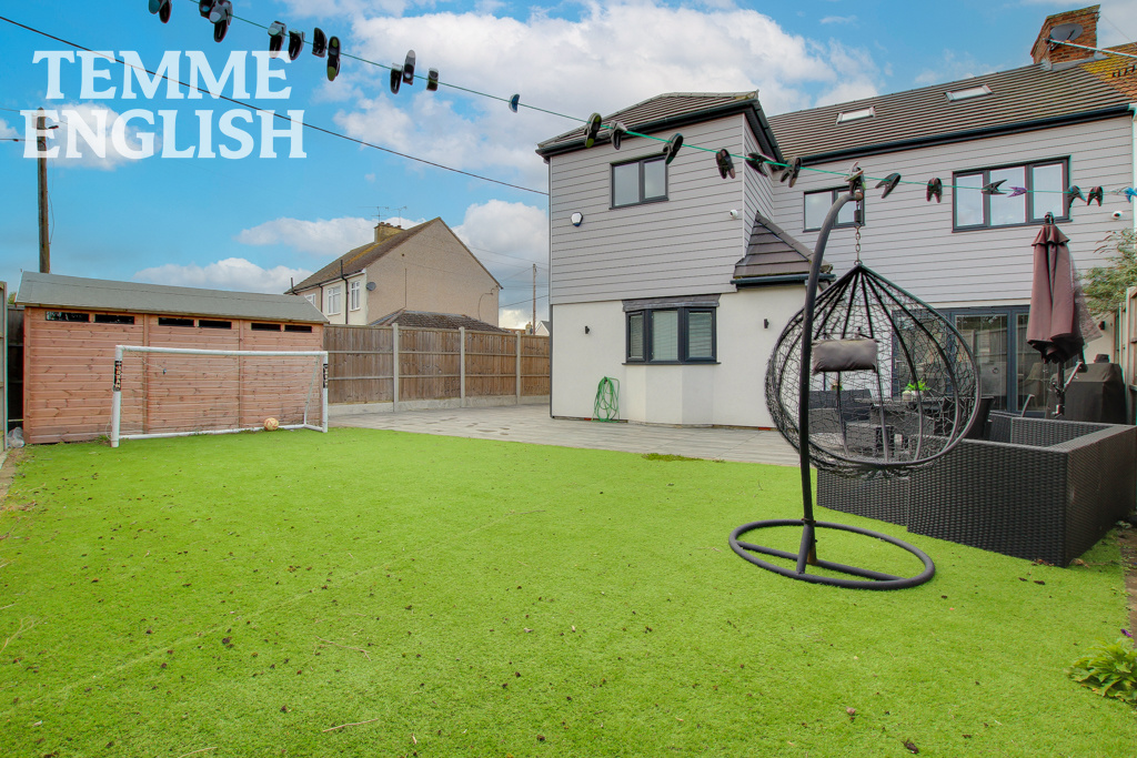 GUIDE PRICE £625,000 - £650,000 Temme English are delighted to present to the market this fantastic FIVE bedroom semi-detached house a stunning kitchen, lounge/ diner. Most deceptive in its size from initial appearance, the property has been extended to provide a trendy jaw-dropping kitchen with plenty of work surfaces and island. To complete the downstairs, you have the W/C & integral garage. Positioned on a good corner plot in a prime location Shotgate. The first floor consists of Two double bedrooms and family bathroom. You will also find the master bedroom with its very own walk-in wardrobe leading to the breath taking en suite. Designed to the style of a famous luxurious hotel in London it really has it all. Walk in shower, hot tub style bath with steps and a built-in television, his & her sinks and W/C. The property has been extended into the loft to provide and further two double bedrooms both with multiple Velux windows allowing plenty of natural sunlight. The rear garden has a large patio area with the remainder being artificial lawn. Viewing comes highly recommended, NO ONWARD CHAIN!