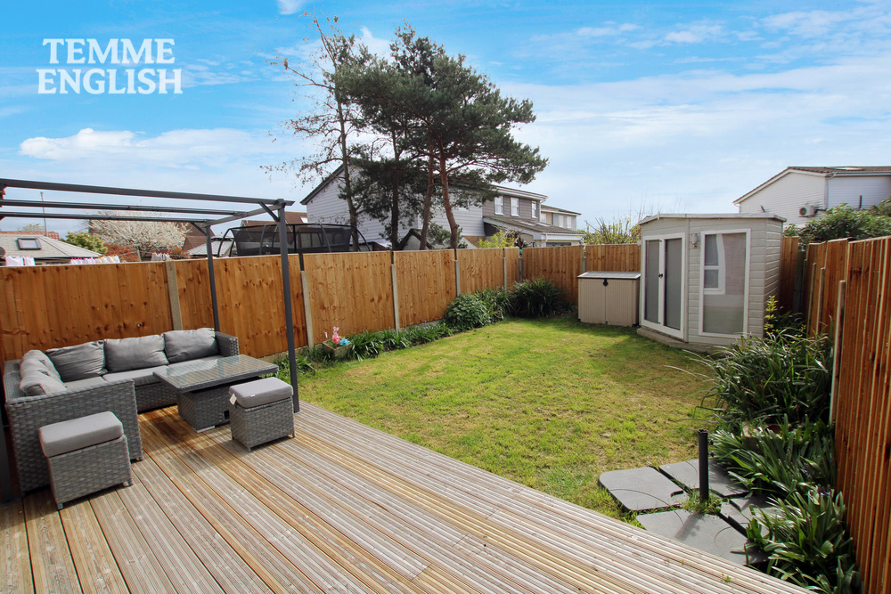 Externally, there is a south facing and attractively landscaped rear garden complete with a summerhouse for storage, side access and a detached garage. To the front, a private driveway and pleasant frontage provide excellent kerb appeal. The property also benefits from upgraded, low-maintenance Hardie Plank cladding installed within the last five years.