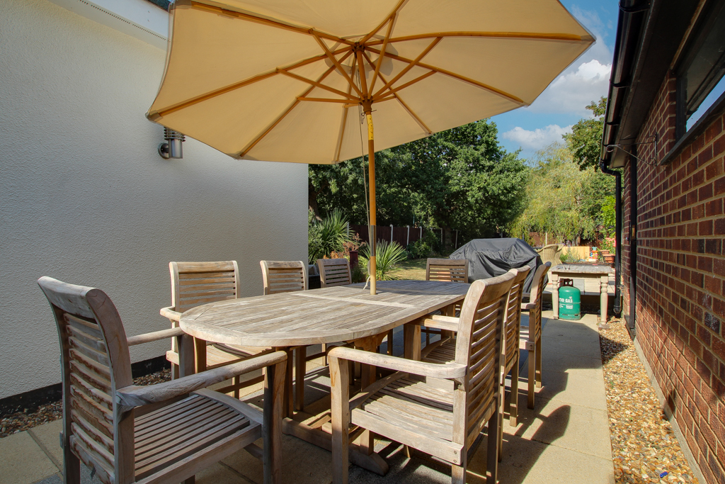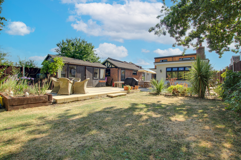 Proudly positioned within a pretty tree lined part of Church End Lane Runwell on a plot approaching 0.2 acres is this outstanding FIVE-bedroom detached house. Having been heavily extended in the past, the square footage is vast internally. Consisting of charm and character throughout, this family home really is a one off and full of features, including high ceilings consistent with the traditional design of the original (now extended) property built in 1940’s. Once arriving at the property via its secluded driveway you are greeted by a set back entrance porch between the double bays. Upon entering the property, you are welcomed by a traditional style long entrance hall which opens through to a larger hall. To the front of the property, you have the downstairs bedrooms both double in size along with the bay windows allowing plenty of natural sunlight. Further along you have the stunning downstairs shower room and larger hall where the stairs are located, currently big enough to be used as an office area with built in storage. Through the double doors you will find the formal lounge and play room offering direct access to the garden and breathtaking Kitchen/Diner. The newly quality fitted kitchen has plenty of work surface area along with built in appliances, breakfast bar and ample storage cupboards. Cleverley designed the secret utility room is closed off by double doors to max the kitchen cupboards which again has direct access to the garden and a sink basin. Upstairs is just as spacious and has been designed to give maximum space to all families with THREE double bedrooms and a four-piece family bathroom 8’6 x 14’8 in size. Externally the mature rear garden approaches 100ft in length and houses the garage, shed and the Scandinavian circular BBQ outbuilding. The location is great being a non-estate location, yet still within walking distance to Wickford Railway Station, well regarded Schools and two local parks including The Memorial Park. Beauchamps Secondary School is closest (walk via Memorial Park) and is rated 'Outstanding' by Ofsted. Only by an internal viewing can the size, plot, location and overall feel be fully appreciated.