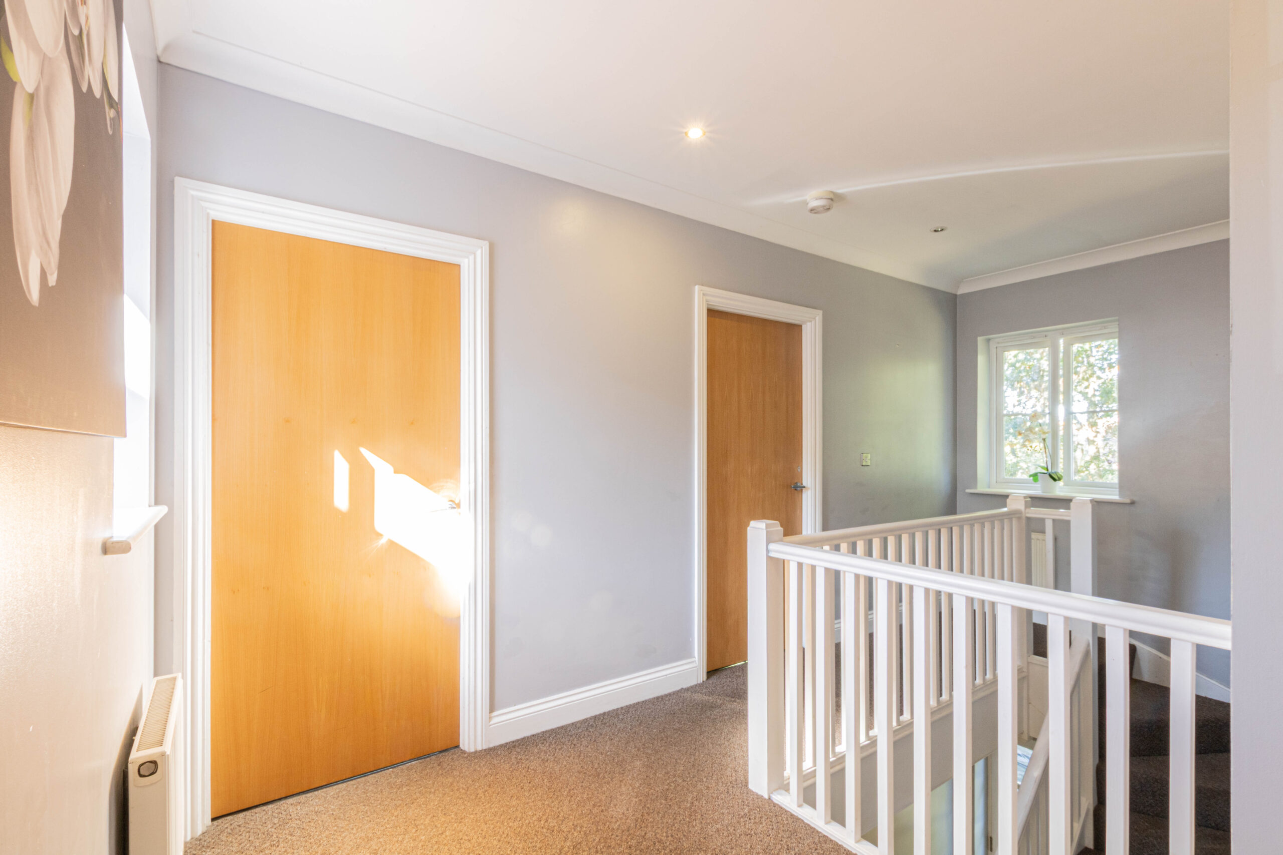 The first floor offers four well-proportioned bedrooms, including a generous principal bedroom that benefits from a stylishly appointed en-suite shower room and fitted wardrobes. The remaining three bedrooms are served by a modern family bathroom, providing comfortable accommodation for family members or guests all being perfectly able enough to act as double bedrooms.