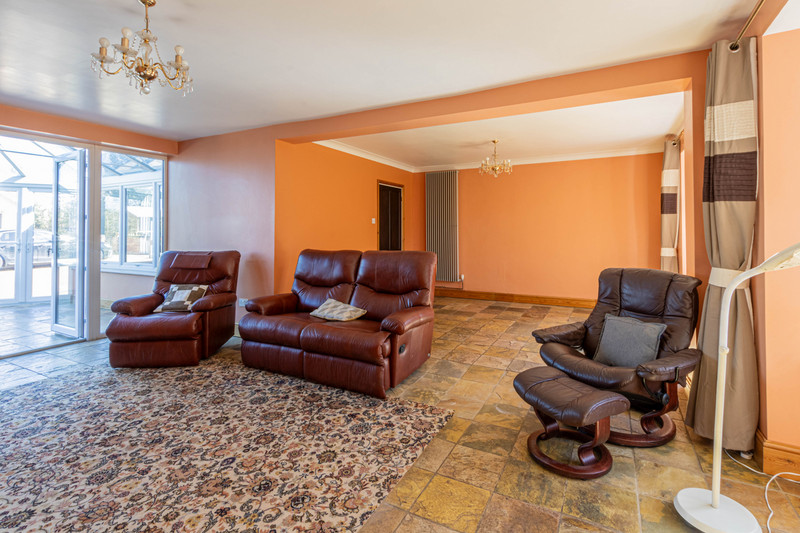 The property features flexible living accommodation across both floors, providing ample space for large families or those seeking a home with potential for future adaptation. The first floor hosts four generously sized double bedrooms, with the option of converting one room into two separate spaces, measuring an impressive 23' x 19'. Bedroom one, which is currently used as a pool room, offers breathtaking views over the surrounding fields, while every room in the property benefits from stunning vistas of the idyllic countryside.