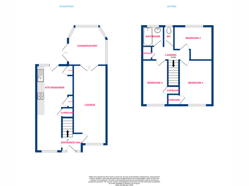 Upstairs comprises three well-proportioned bedrooms, all offering excellent built-in storage, along with a family bathroom and a separate W/C for added convenience.