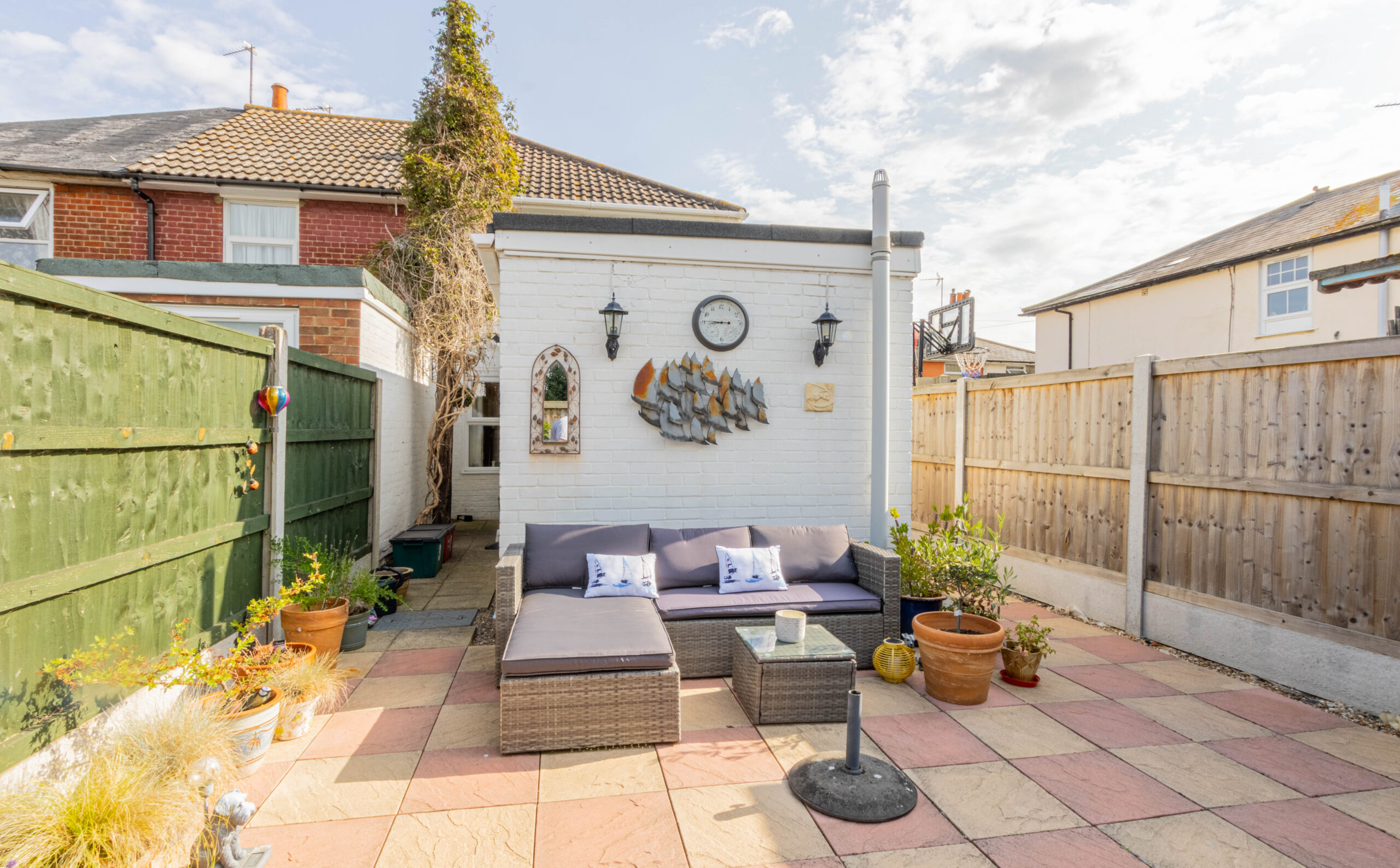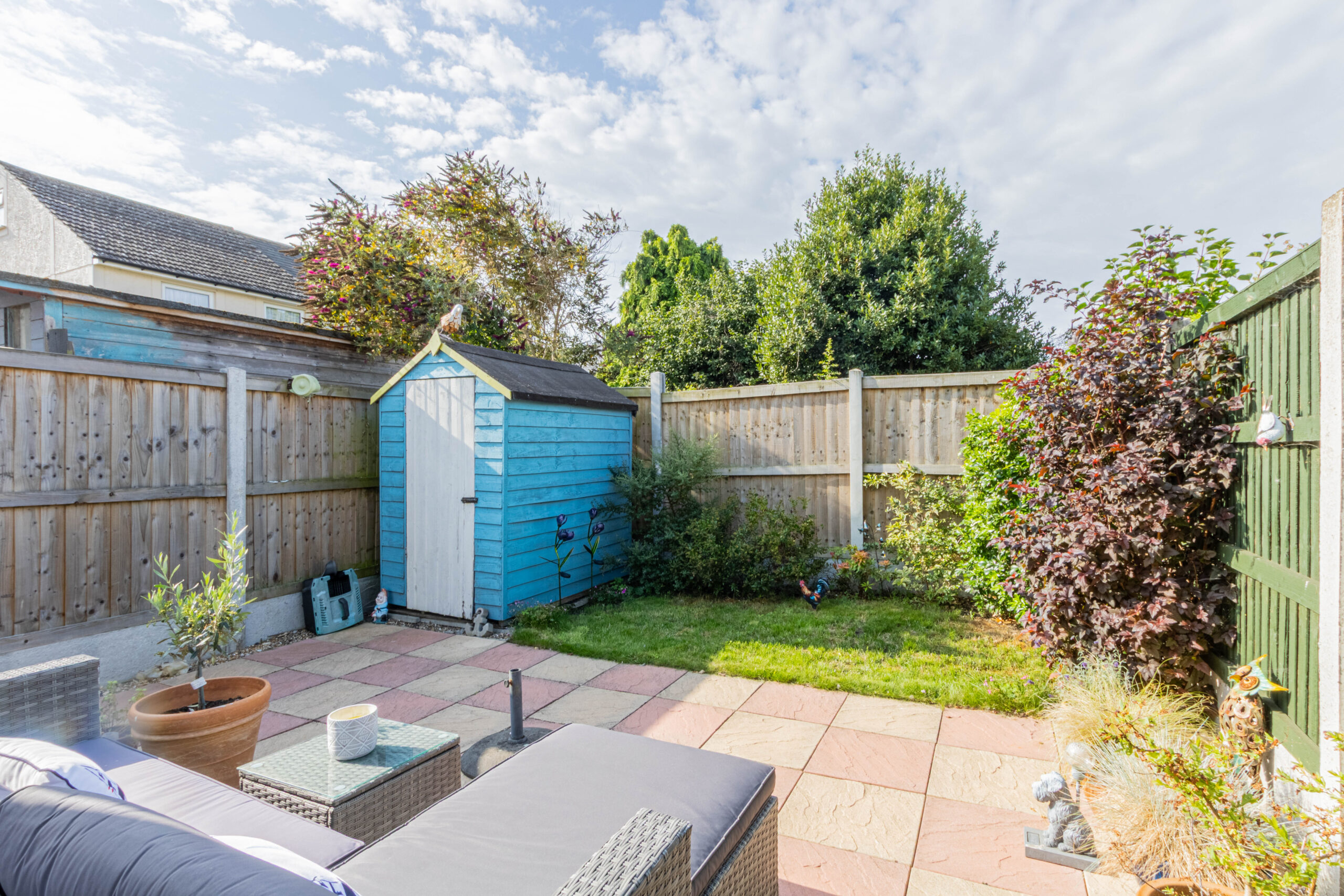 To the rear of the property is a sun-trap garden — a generous yet low-maintenance outdoor space perfect for summer BBQs or simply unwinding. Side access offers added convenience and secure entry from the front of the property.