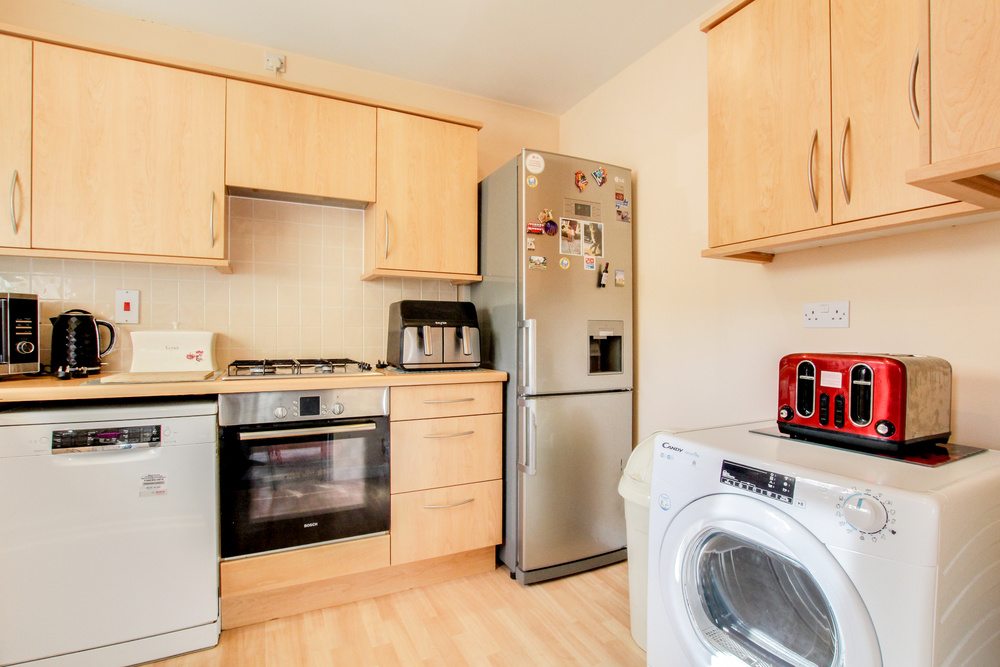 This end-of-terrace house on Galt Close offers an inviting entrance hall leading to a spacious lounge and an extension, providing ample space for family gatherings. The kitchen is thoughtfully designed, measuring 9’9 x 8, perfectly complementing the family-focused layout of the home. The property includes two bedrooms with built-in robes.