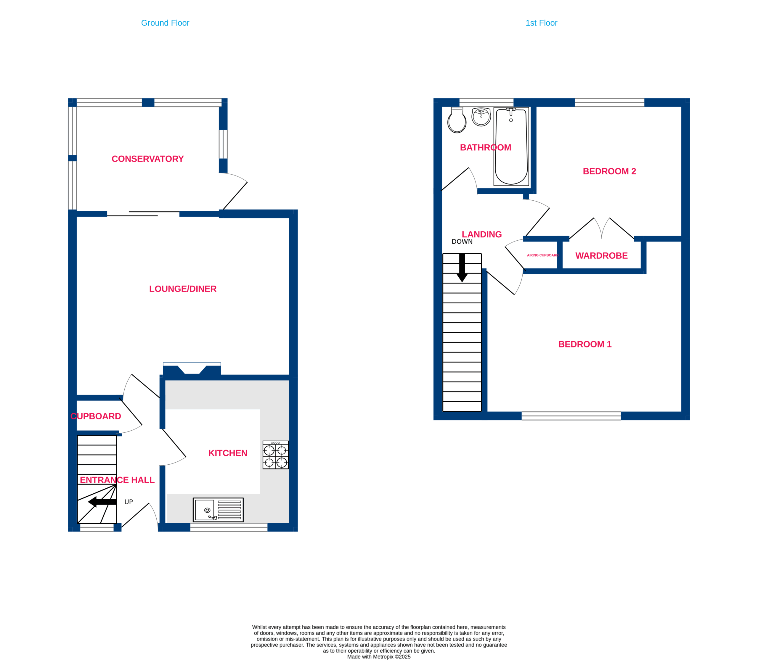 Upstairs offers two spacious double bedrooms, both with ample built in storage, and a well presented family bathroom complete with a shower over the bath.