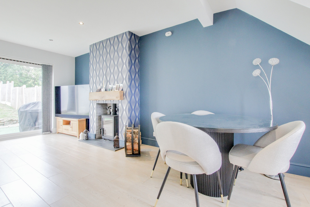 Internally, the property boasts three generously sized bedrooms, with two featuring built-in wardrobes for added convenience. The heart of the home is the large dual-aspect living area, complete with a cosy log burner – perfect for relaxing evenings or entertaining guests.
