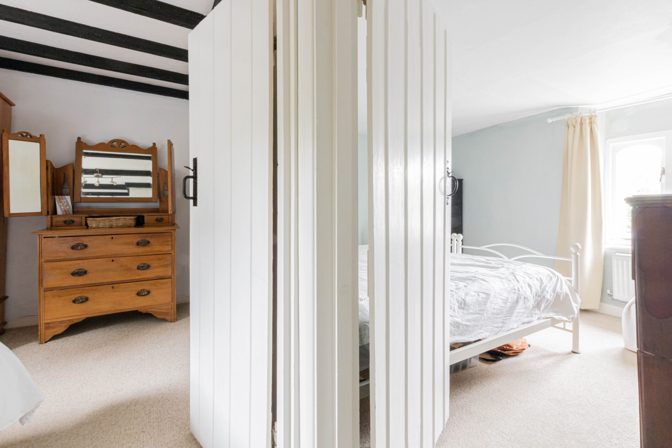 Upstairs, the property offers three well-proportioned double bedrooms, each with its own unique outlook and charm. Bedroom One benefits from built-in storage, while Bedroom Three enjoys peaceful views over the rear garden. A large cloakroom on this floor offers scope to be converted into an additional shower or bathroom if desired.