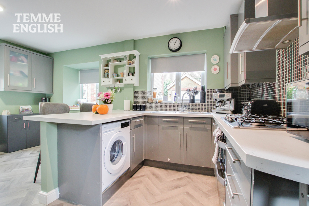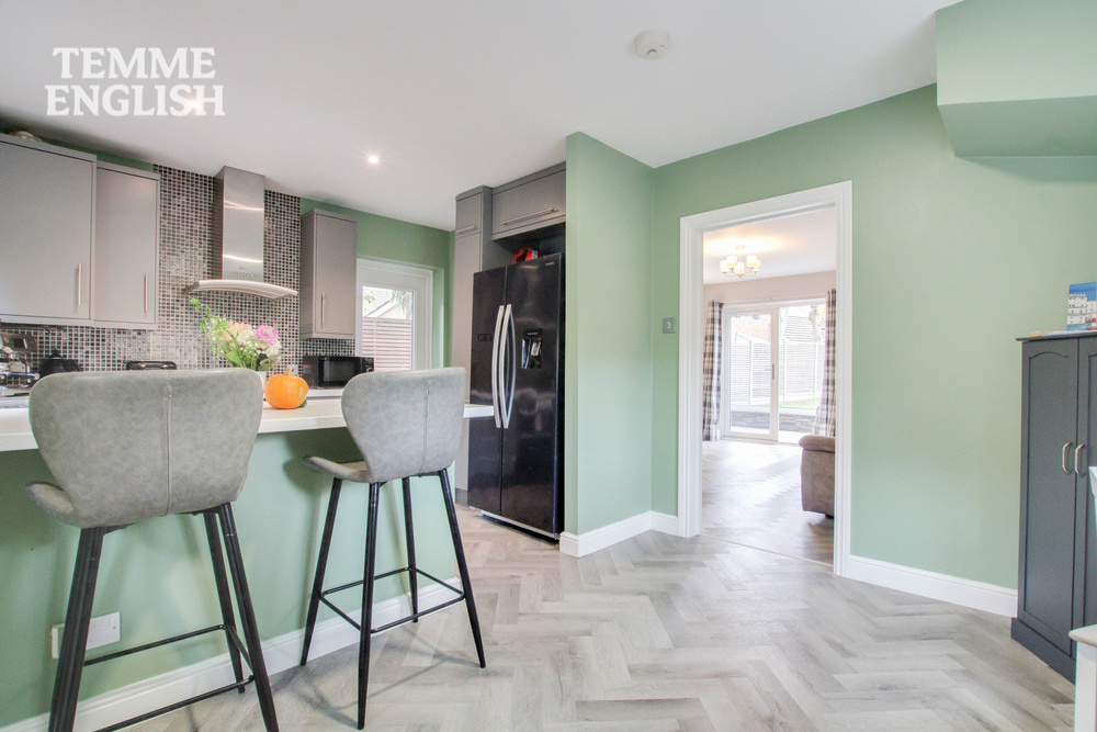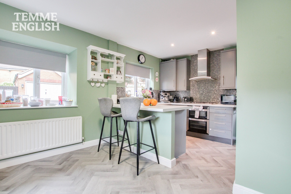 • Stylish open plan kitchen diner with a breakfast bar, perfect for modern family living.