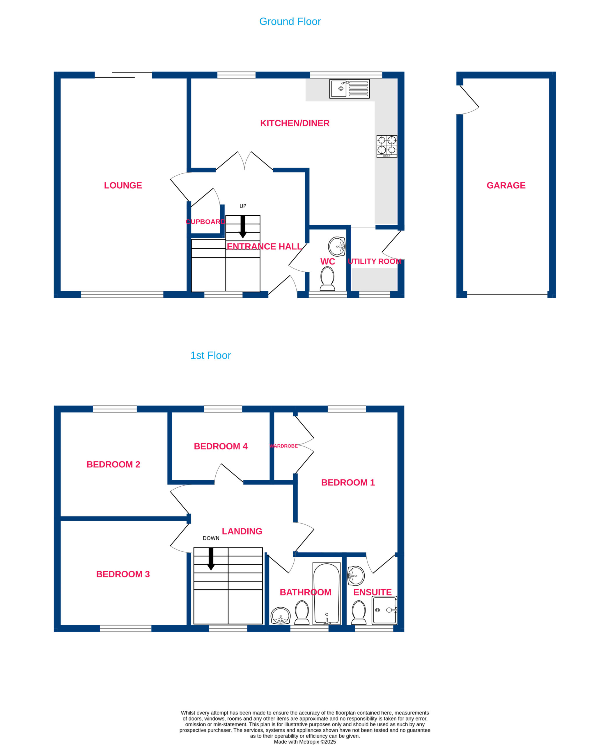 Upstairs hosts the family bathroom with power shower over bath, four great sized bedrooms with the main bedroom profiting from built in wardrobes and stylish ensuite. Even the landing itself is attractive and gives access to the loft via an integrated ladder.