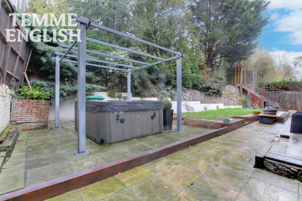 Externally as mentioned there is a unoverlooked split level elevated rear garden with a patio area currently housing the hot tub.