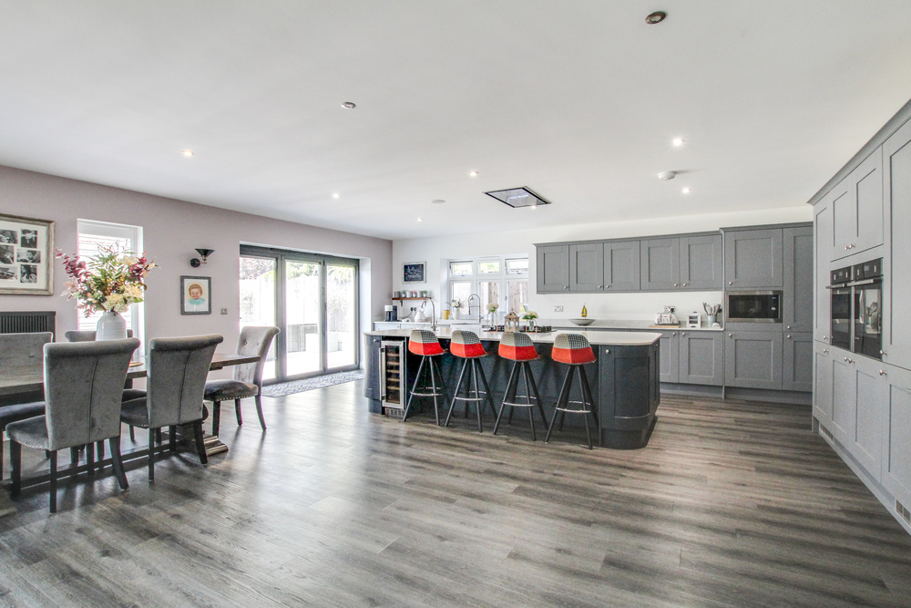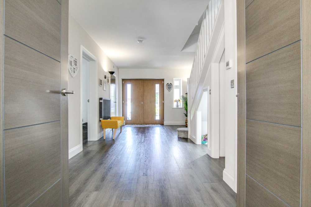 Proudly positioned within an Established Road offering easy walking distance to all amenities and schools including South Woodham Ferrers Railway Station with links to London Liverpool Street (49 minutes to Stratford). The high-quality accommodation spans itself over two levels boasting square footage in the region of 3600. In addition there is third floor hobby room lending itself for all types of usage. The accommodation is versatile with the ground floor commencing with an inviting entrance hall, formal lounge, spacious study or playroom and a jaw dropping kitchen / living room measuring 37’9 x 22’6 overlooking the landscaped entertaining rear garden. To complete the ground floor there is an impressive sized utility room, cloakroom/WC and ample storage space. The first floor continues in its quality and spaciousness. The well-proportioned layout offers five double bedrooms, two dressing rooms and two private en-suites. Bedroom three en-suite is currently designed as a ‘Jack and Jill’ six piece en-suite/family bathroom. The rear garden is well designed, ideal for entertaining. There is ample parking for various vehicles and an attached garage.