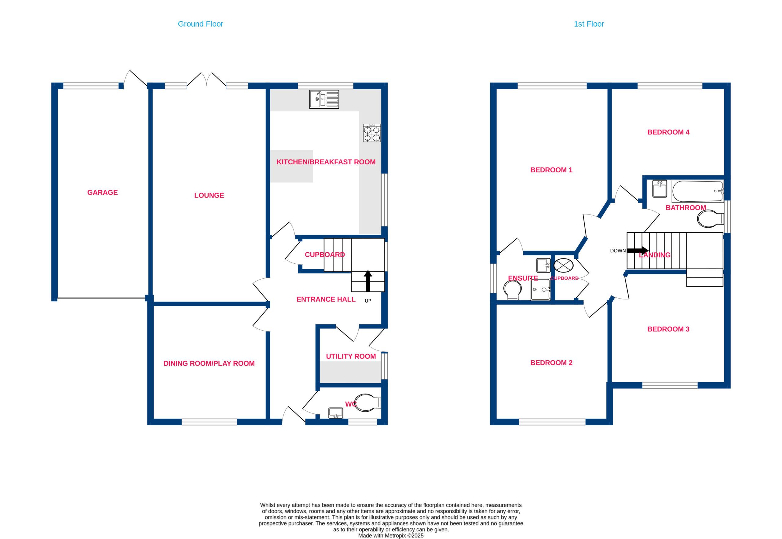 GUIDE PRICE £550,000 - £575,000 Pleasantly positioned in an ideal location for Beauchamps School (rated Outstanding by Ofsted) alongside local shops and Wickford Memorial Park is this outstanding FOUR-bedroom detached house. Offering much kerb appeal with its attractive style appearance, the accommodation internally is surprisingly spacious once through the front door. The current owners have invested much time and expense improving the property greatly over recent years. The layout commences with a huge entrance hall. All rooms on the ground floor lead off of the entrance hall. The Study/Play room (10'2 x 10'3) is the first room on the left hand side which is well presented and a great "get away room". Across the hall is the newly fitted W/C & separate utility room. To the back of the house, you will find the ultra-modern kitchen/breakfast room (13'2 x 10'1) which is stunning and well designed with a breakfast island. Lastly for downstairs you have a lounge (18'6 x 10'6) overlooking the rear garden to complete the ground floor living space. Upstairs plays host to modern family bathroom with shower over bath, spacious landing and four exceptional sized bedrooms. The main bedroom benefits from a complementary en-suite/WC wet room. The exterior boasts driveway parking to the garage and a large corner plot rear garden. The measurements and square footage should go some way to illustrate the size on offer but only by an internal viewing can the space and standard be fully appreciated.