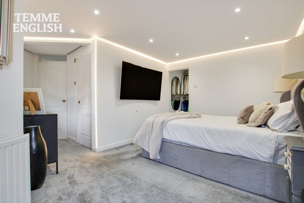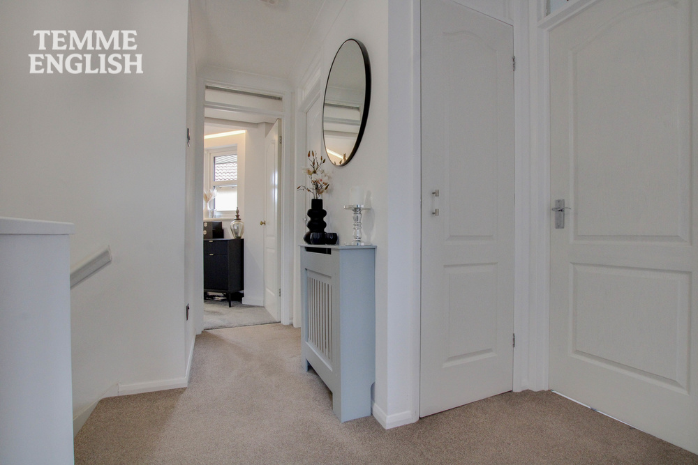 Upstairs offers a contemporary family bathroom with deep soak bathtub, two well-proportioned double bedrooms, a generous single bedroom, and the feature main bedroom suite boasting a modern en-suite shower room and boutique-style walk-in wardrobe.