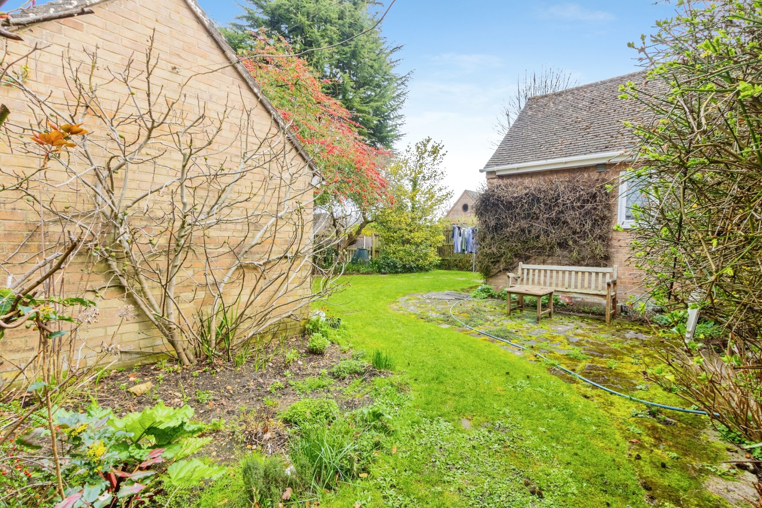 A substantial pantry cupboard provides excellent additional storage, keeping the main kitchen area organised and clutter-free. There is dedicated plumbing for both a dishwasher and washing machine, as well as ample space for a tall fridge-freezer. The kitchen also offers direct access to the rear garden, making it ideal for both everyday living and entertaining.