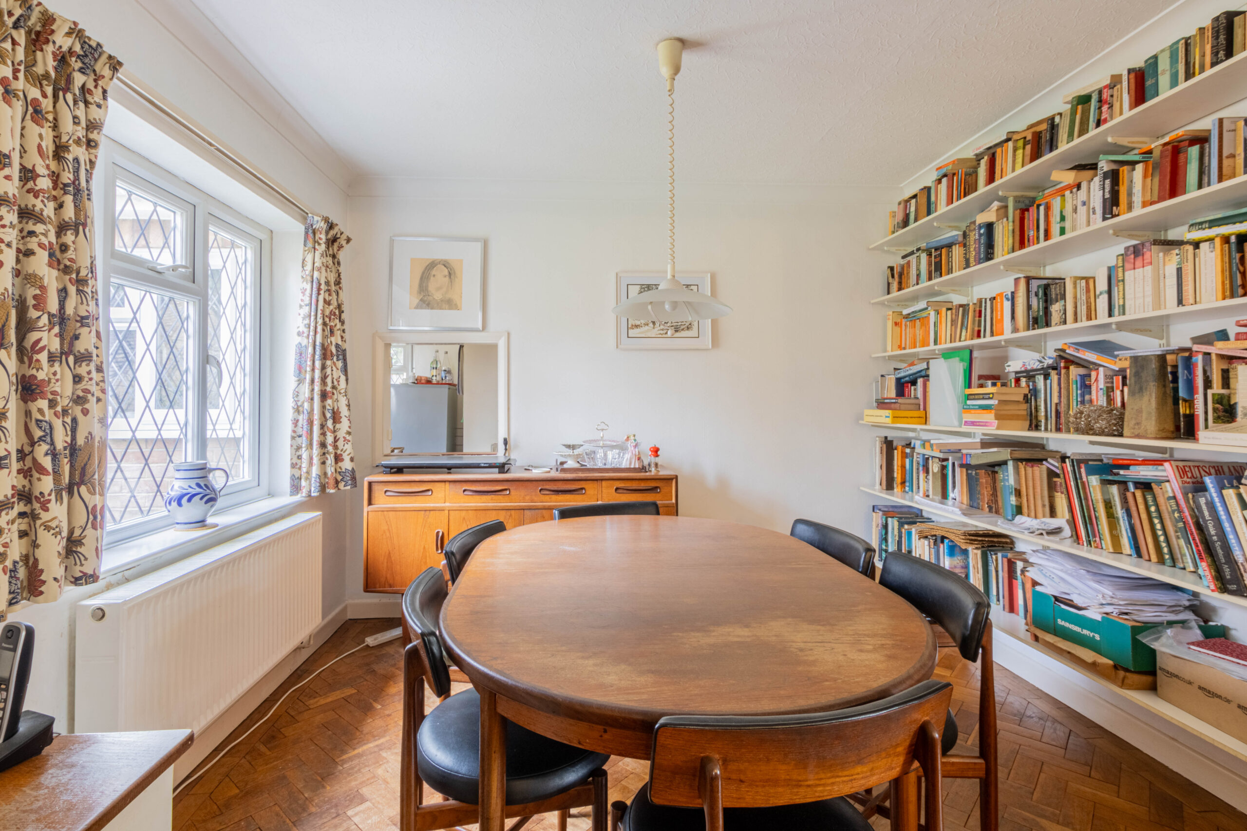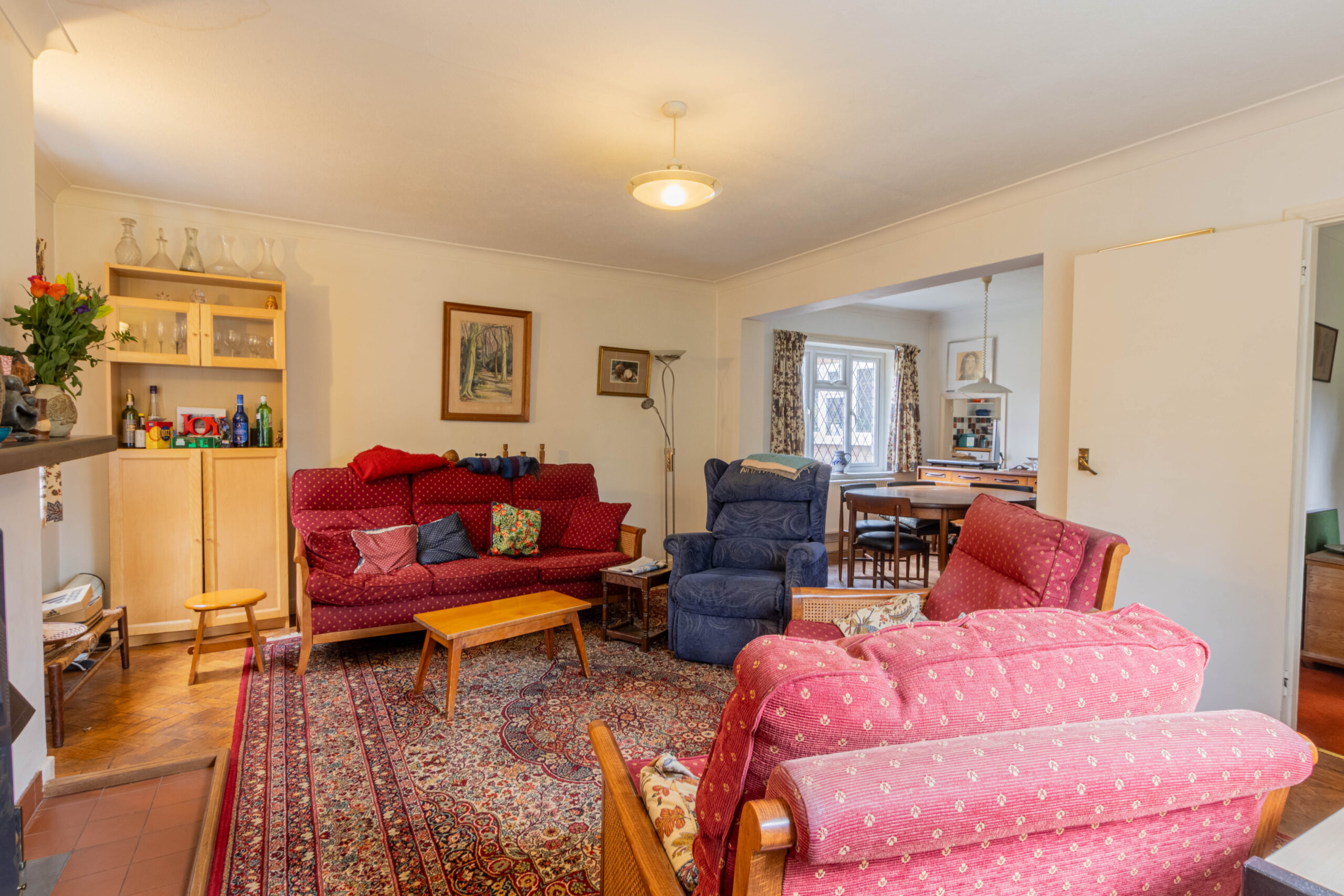 The standout reception space is the impressive L-shaped lounge/diner, featuring beautiful wood block parquet flooring laid in an attractive herringbone pattern. This bright and airy room benefits from an abundance of natural light through double glazed windows to the front, side, and rear aspects, while an inset fireplace provides a cosy focal point.