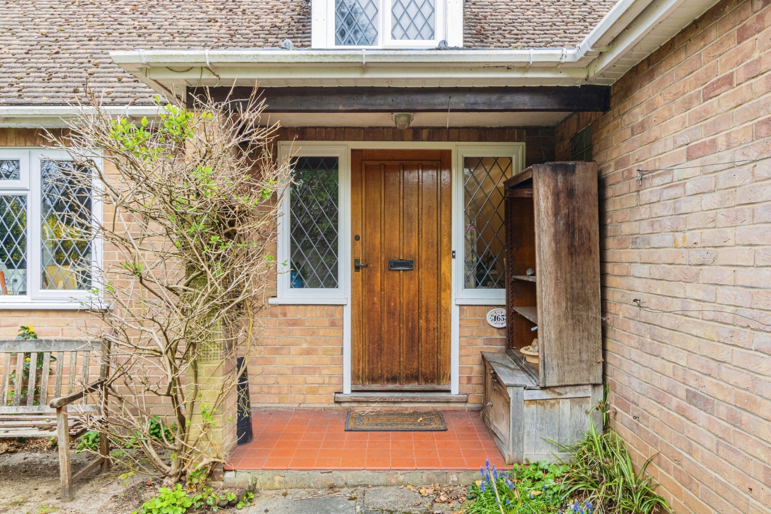 At the heart of the home lies the bright and spacious kitchen/diner, a welcoming and functional space that seamlessly blends traditional character with modern convenience. Bathed in natural light from dual-aspect lattice windows, the kitchen features an extensive range of classic cream-coloured cabinetry, including elegant glass-fronted display units. Expansive wood-effect worktops offer excellent preparation space, while high-quality finishes such as terracotta-style floor tiles laid diagonally enhance the sense of space. Recessed spotlighting adds a contemporary touch, ensuring the room remains light and inviting throughout the day.