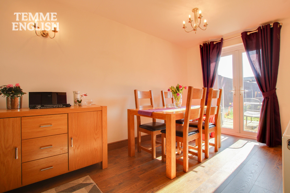 The internal accommodation comprises a welcoming entrance hallway, leading into a spacious lounge/diner with double patio doors opening onto the garden, allowing plenty of natural light to flow in from the south-facing rear aspect. Upstairs features three well-proportioned bedrooms and a sleek family bathroom with shower over bath.