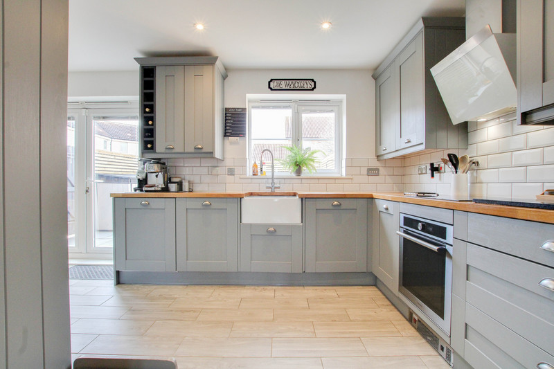 The ground floor accommodation consists of the welcoming entrance hallway with W/C, spacious lounge and luxury kitchen diner! The Wren kitchen has been finished to a high specification and provides a vast amount of storage including a pantry.
