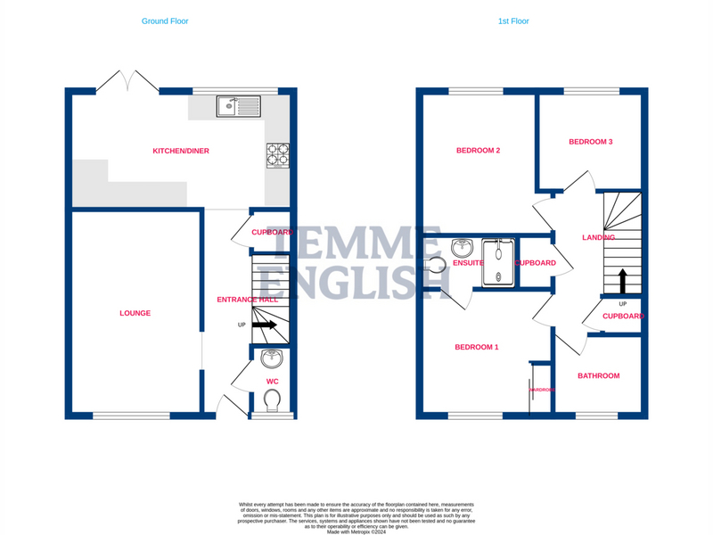 Upstairs provides the modern family bathroom and three great sized bedrooms! The feature main bedroom profits from fitted mirrored wardrobes and ensuite shower room.