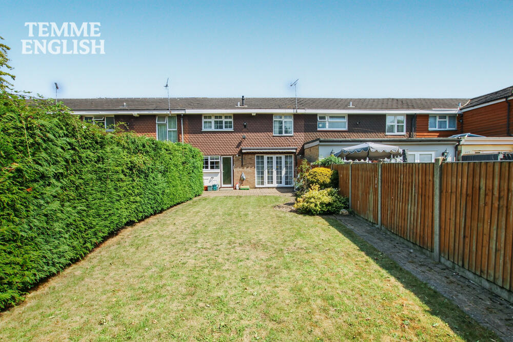 Externally, the property benefits from a pleasant front garden with potential for conversion into a driveway, subject to planning permission. The rear garden is both substantial and beautifully landscaped, backing onto a school playing field to ensure excellent privacy. A gated courtyard area to the rear provides further space and includes two useful storage sheds. As an added bonus there is a sun awning fitted in the rear garden over the patio.