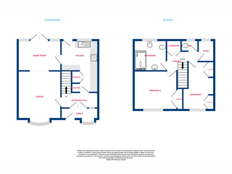 Upstairs features two generously sized double bedrooms, a cosy study ideal for home working or nursery use, a substantial five-piece family bathroom suite, and an additional separate W/C for added convenience.