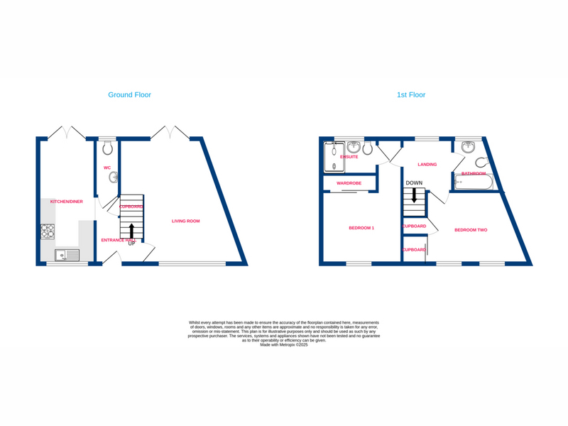 Upstairs provides two nicely proportioned double bedrooms plus the neat and tidy family bathroom with shower over bath. The feature main bedroom profits from built in mirrored wardrobes and a luxury ensuite shower room whilst bedroom two has built in wardrobes and storage!