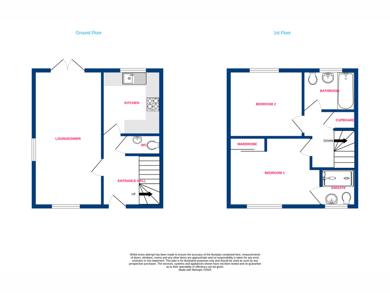Upstairs hosts two well proportioned double bedrooms and a neat plus modern family bathroom. The impressive main bedroom benefits from built-in mirrored wardrobes and a luxurious ensuite shower room.