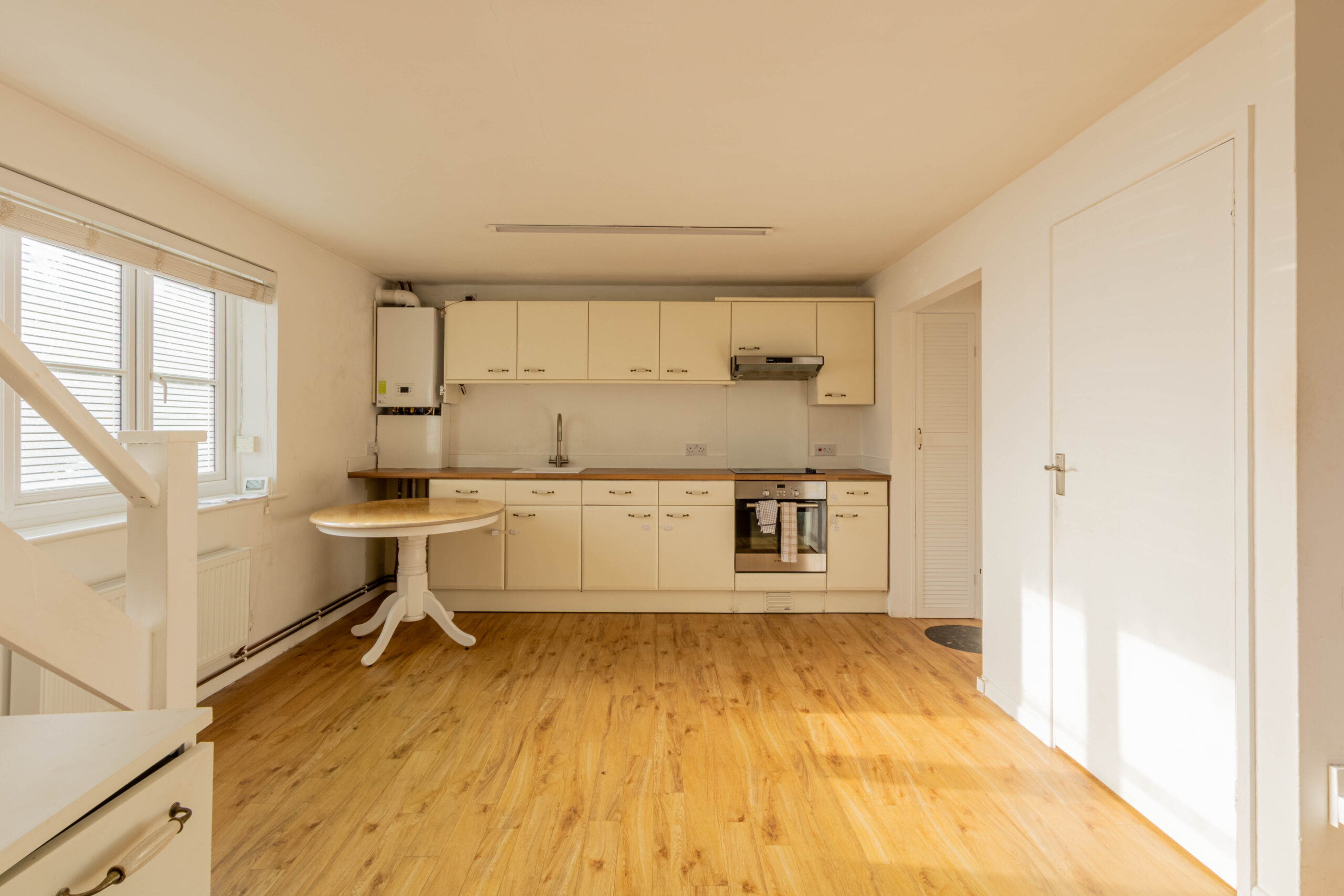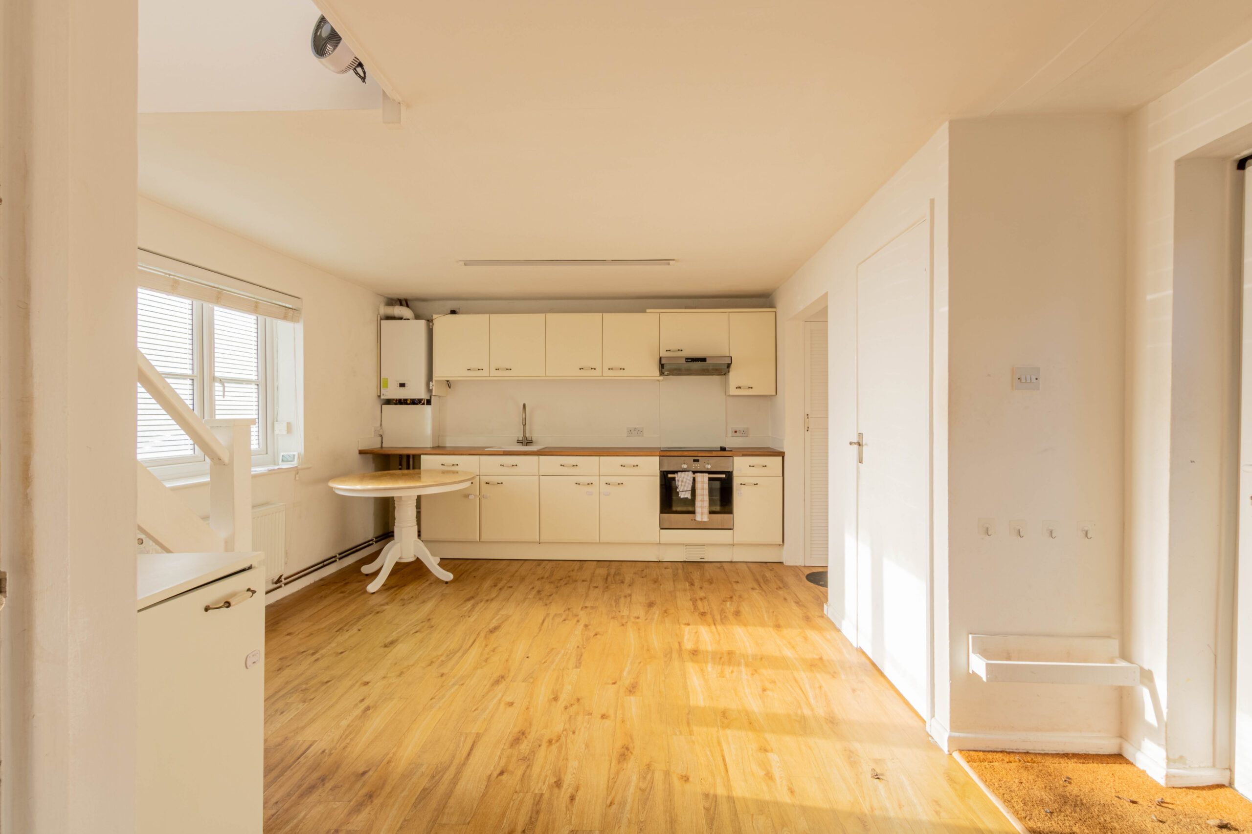 The ground floor offers a welcoming living environment. The lounge enjoys a dual-aspect outlook, allowing for an abundance of natural light throughout the day, and is centred around an attractive open fireplace which creates a warm and homely focal point. The kitchen/dining room is particularly impressive in size, measuring approximately 17'10" x 13'7" at its widest points. This generous space is fitted with a comprehensive range of cabinetry and ample work surfaces, along with an integrated oven and hob, making it ideal for both everyday living and entertaining. Completing the ground floor is a stylishly appointed modern bathroom.