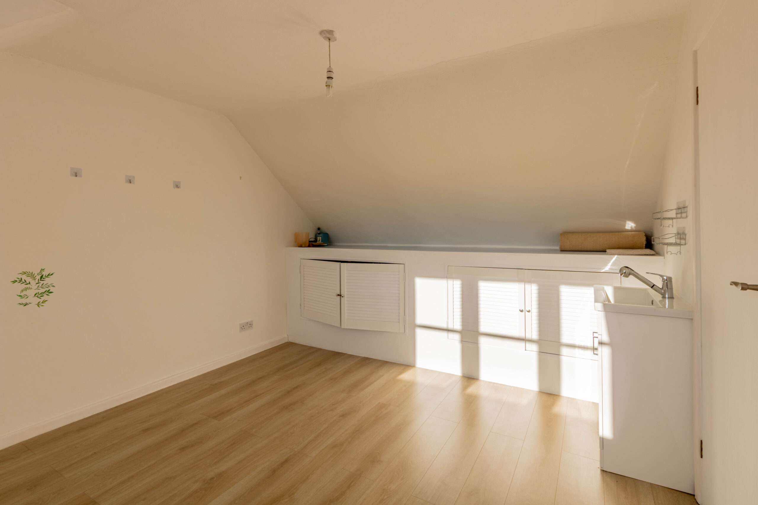 The accommodation is both spacious and versatile. On the first floor, there are two well-proportioned double bedrooms, one thoughtfully fitted with its own wash hand basin, and fitted storage, adding a traditional touch of practicality. The landing area is notably spacious and lends itself perfectly to use as a study nook, reading corner or small home office space.
