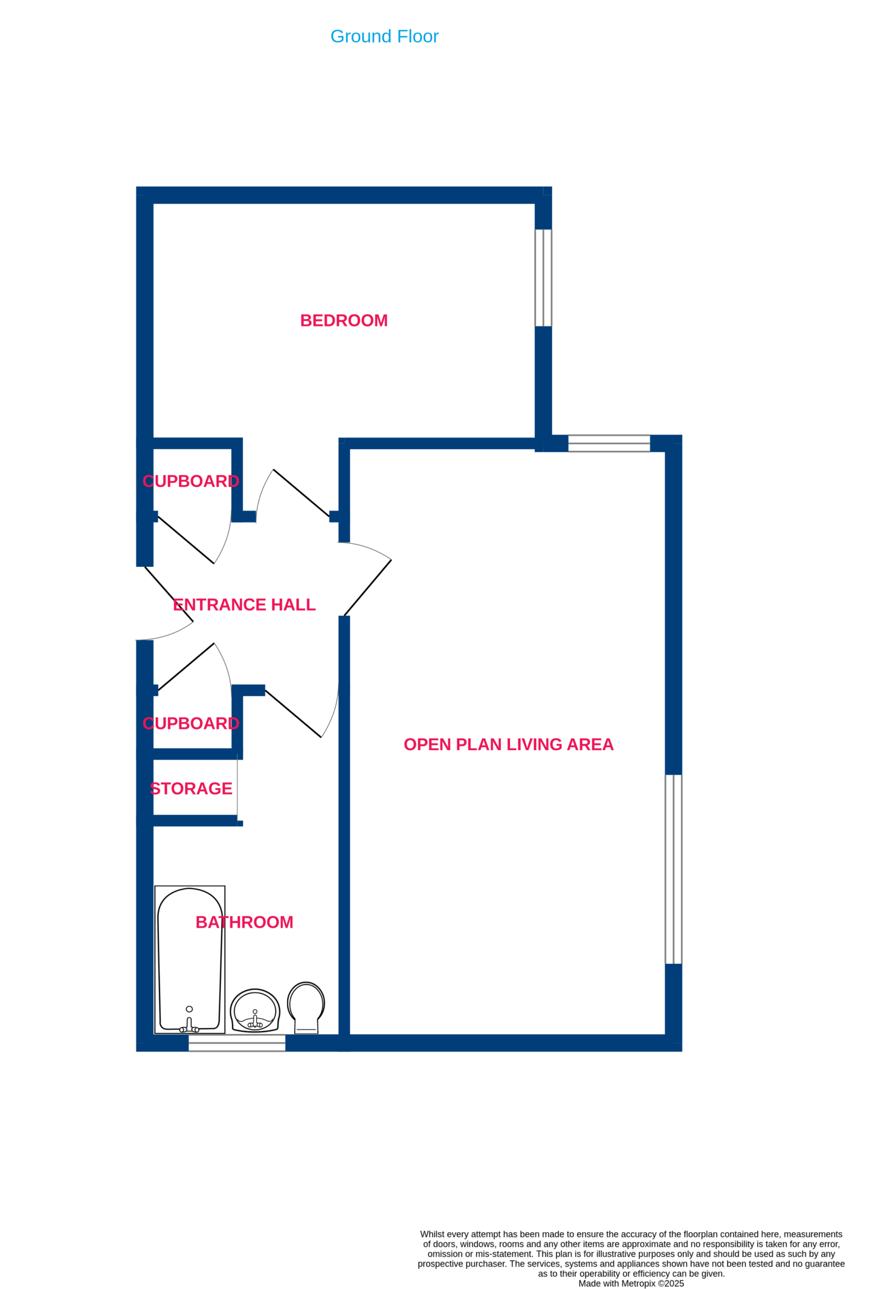 The generous internal accommodation includes a welcoming entrance hallway with plenty of storage space, a double bedroom, a spacious bathroom with a shower over the bath, and a bright open-plan living area that combines the lounge, dining, and kitchen spaces.