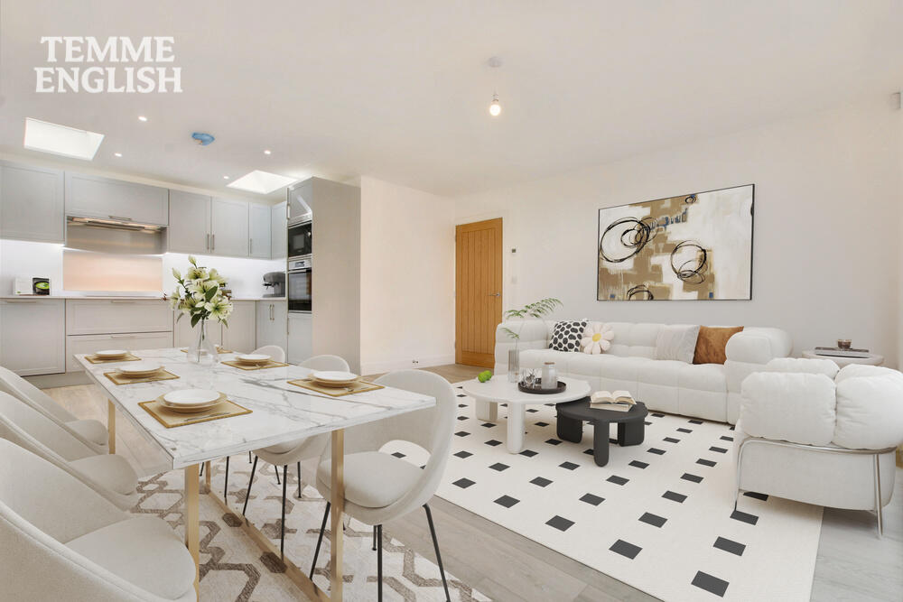 The internal accommodation consists of the striking entrance hallway, two nicely proportioned double bedrooms, stylish four piece family bathroom suite and the open plan living area which incorporates the lounge diner and stunning kitchen.