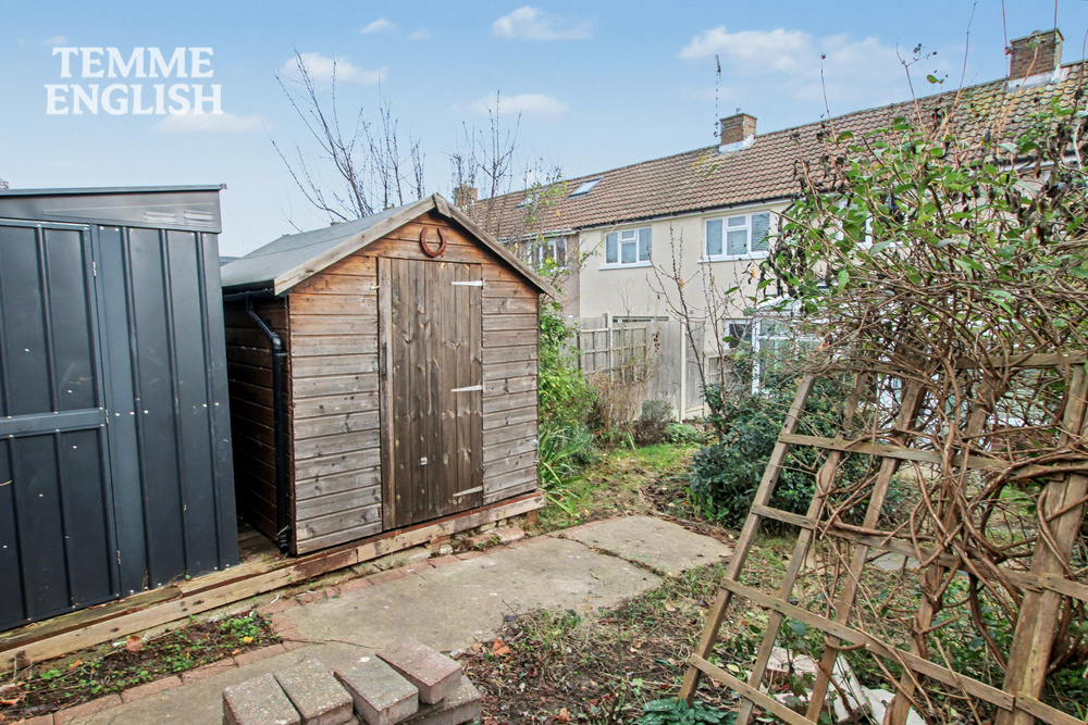 Externally, the property enjoys a pleasant rear garden with two storage sheds. Ample communal parking is available nearby, and it may be possible to add a private driveway, subject to a successful planning application.