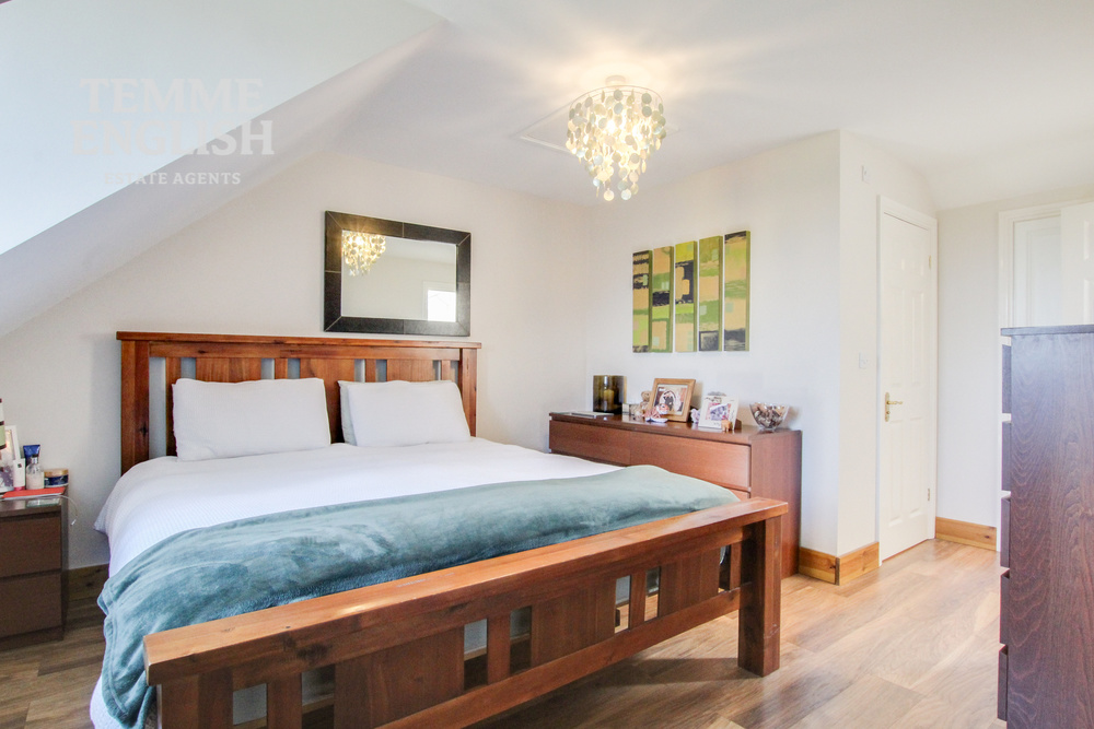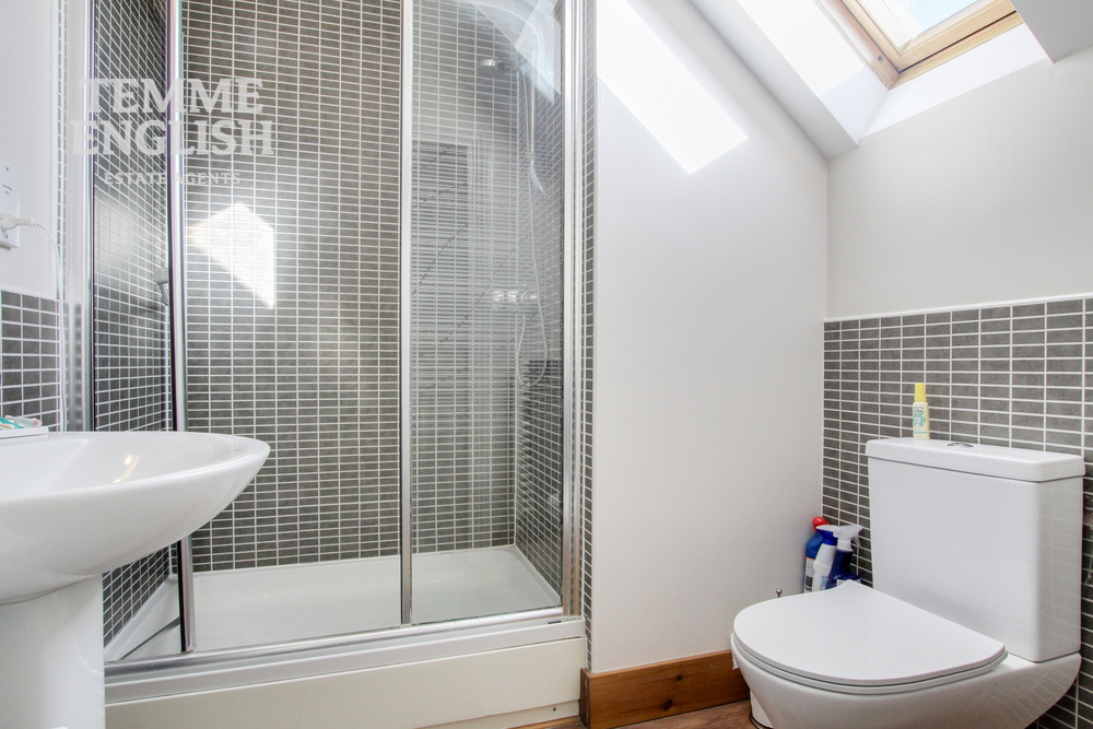 Upstairs, you'll find a trio of comfortable bedrooms, each with its own unique dimensions: 10'0 x 14'4, 7'3 x 11'2, and 10'0 x 17'0. The main bathroom (6'7 x 6'7) is sleek and practical, catering to the needs of the household. The main bedroom is on the top floor allowing privacy and boasts a luxurious en-suite (5'8 x 5'8), ensuring convenience.