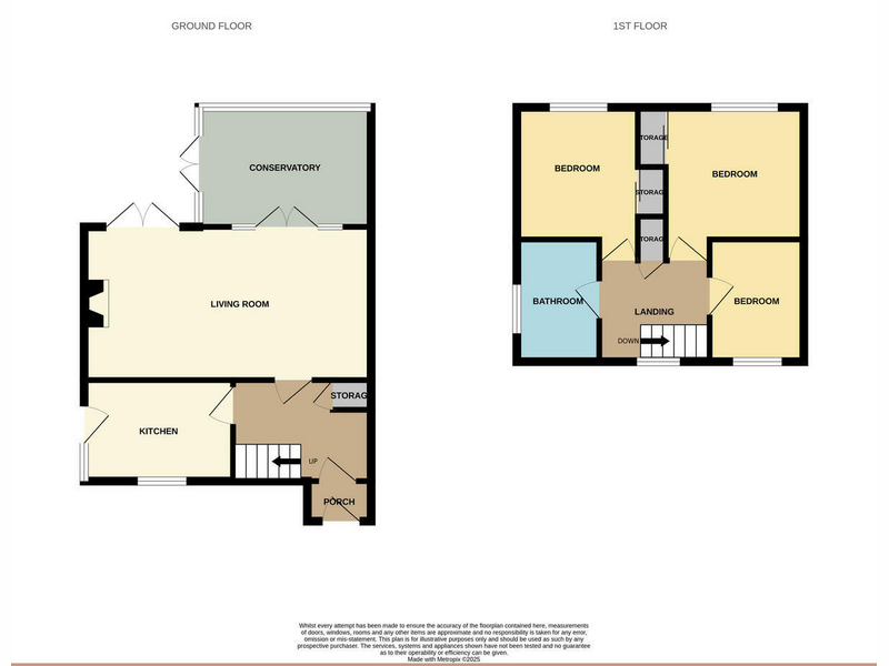 Bedroom Two 11'1 x 9'1, Bedroom Three 9'2 x 7'5