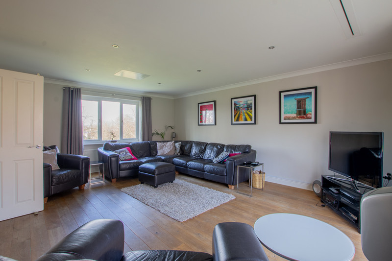 The first floor boasts a large hallway with stairs connecting all levels. Double doors lead into the impressive living room, complete with a cinema system, dual-aspect windows, and patio doors opening onto the garden. This floor also includes a separate dining room (possible 5th bedroom), a cloakroom, and a light-filled kitchen. A door from the hallway opens onto the balcony, offering front-facing views that take in the views of River Colne.
