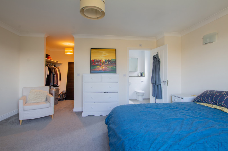 The second comprises a spacious landing, complete with a walk-in airing cupboard and further loft access. The primary bedroom is a impressive sized double with picturesque river views. It leads into a well-equipped dressing room with built-in shelving and hanging rails, as well as a stylish en-suite shower room featuring a modern three-piece suite. Two further double bedrooms and a contemporary family bathroom complete this floor.