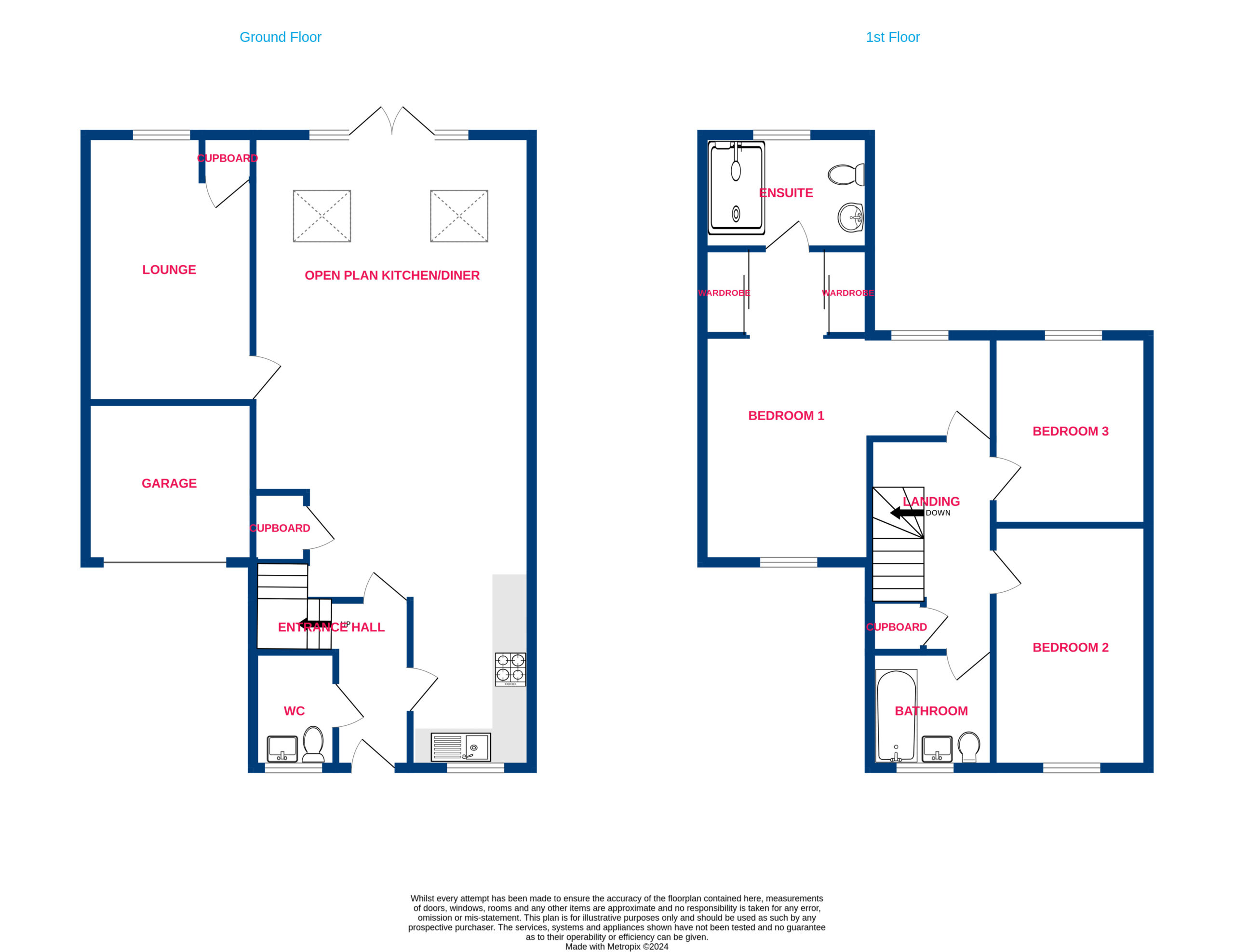 The highlight of the house is the large open plan kitchen/diner, creating a perfect space for entertaining and family gatherings. The kitchen is fitted with modern appliances and ample storage, while the dining area boasts plenty of natural light. The ground floor also includes a convenient downstairs WC, adding to the practicality of the home.