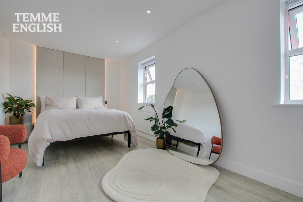 The top floor continues to impress with two immaculate bedrooms, each enjoying its own contemporary en suite shower room, while the rear bedroom is further distinguished by bespoke tempered glass wardrobes, a feature that combines sleek design with everyday practicality.