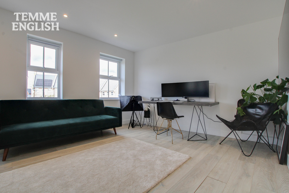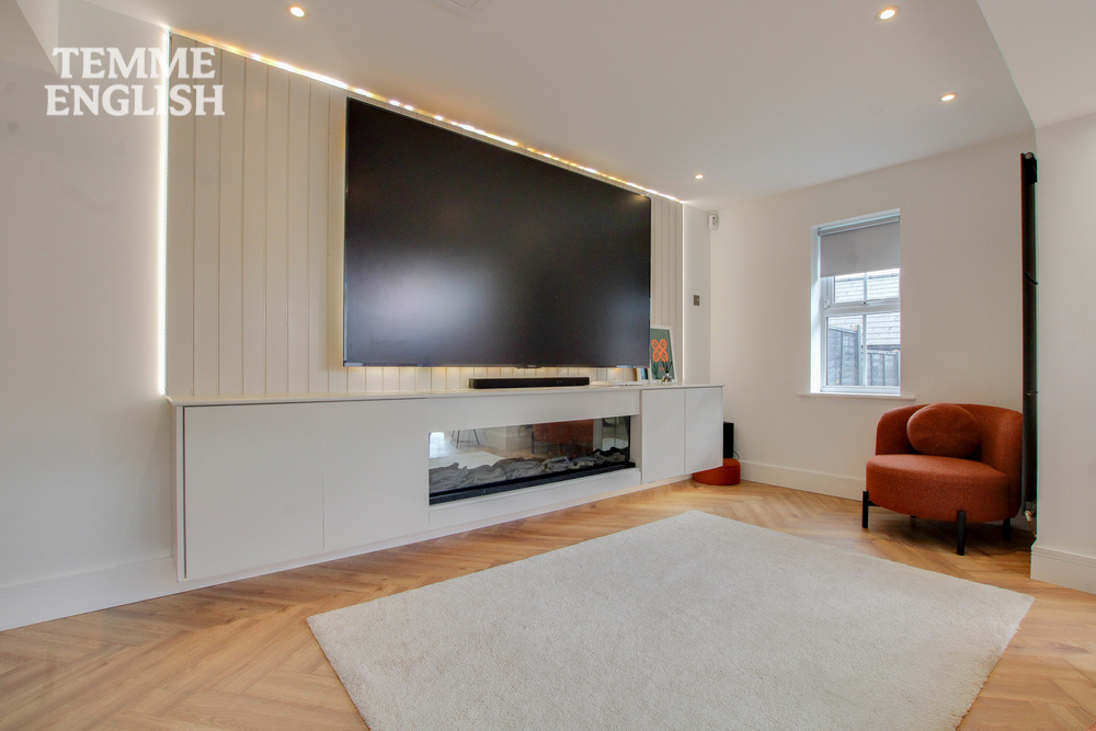 - Showstopping open plan living area with bespoke media wall and acoustic panelling