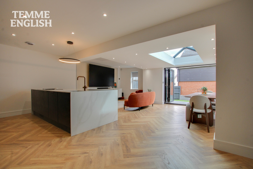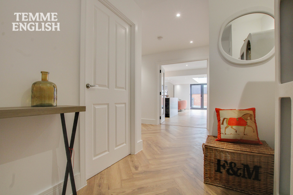 Temme English are proud to present this newly renovated, extended and exquisitely proportioned 5/6 bedroom family residence, gracefully arranged across three expansive floors and boasting in excess of 2,400 sq ft of boutique inspired living space. Designed with an unwavering attention to detail, this home harmoniously blends luxurious finishes with practical functionality, making it a truly rare offering within the highly regarded Dunton Fields development.