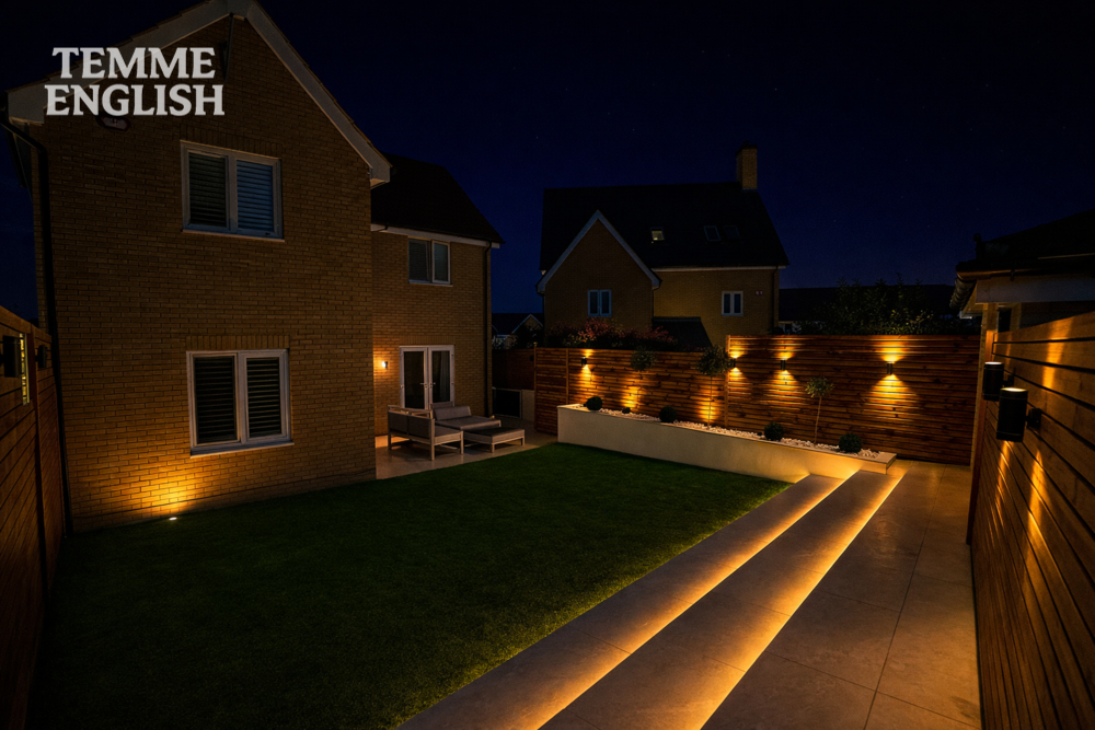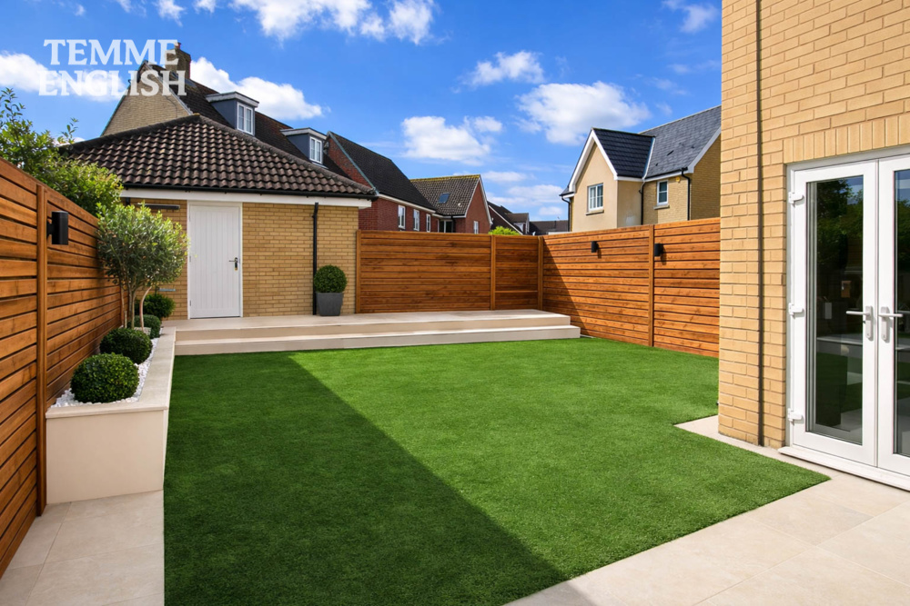 Beautifully Landscaped Garden with Luxury Patio, Artificial Lawn & Feature Lighting