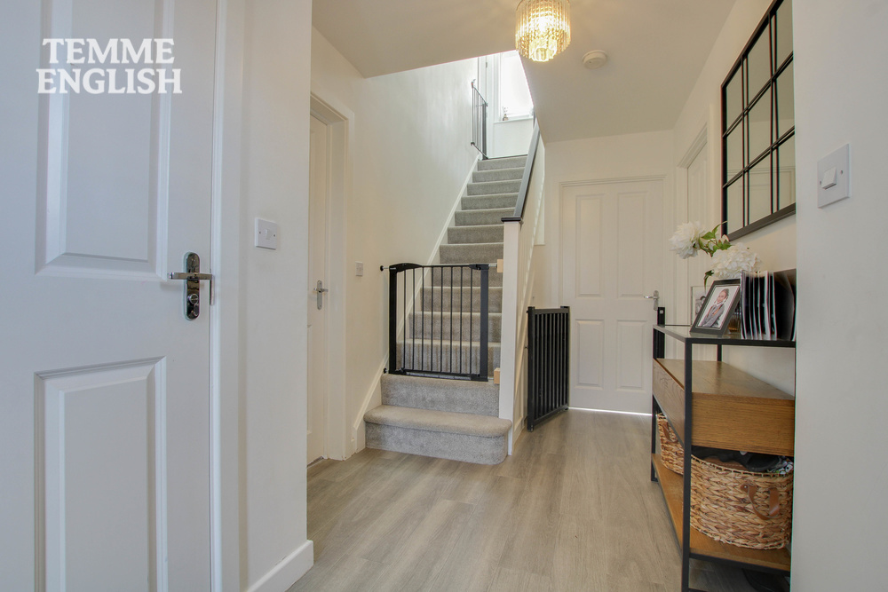 Temme English are proud to present this beautifully upgraded four bedroom detached family home, ideally situated on a desirable corner plot overlooking a communal green space within the highly sought-after Dunton Fields development. Exceptionally well presented throughout and offering flexible living space, the property also benefits from a complete onward chain, helping to ensure a smooth and straightforward move for prospective buyers.