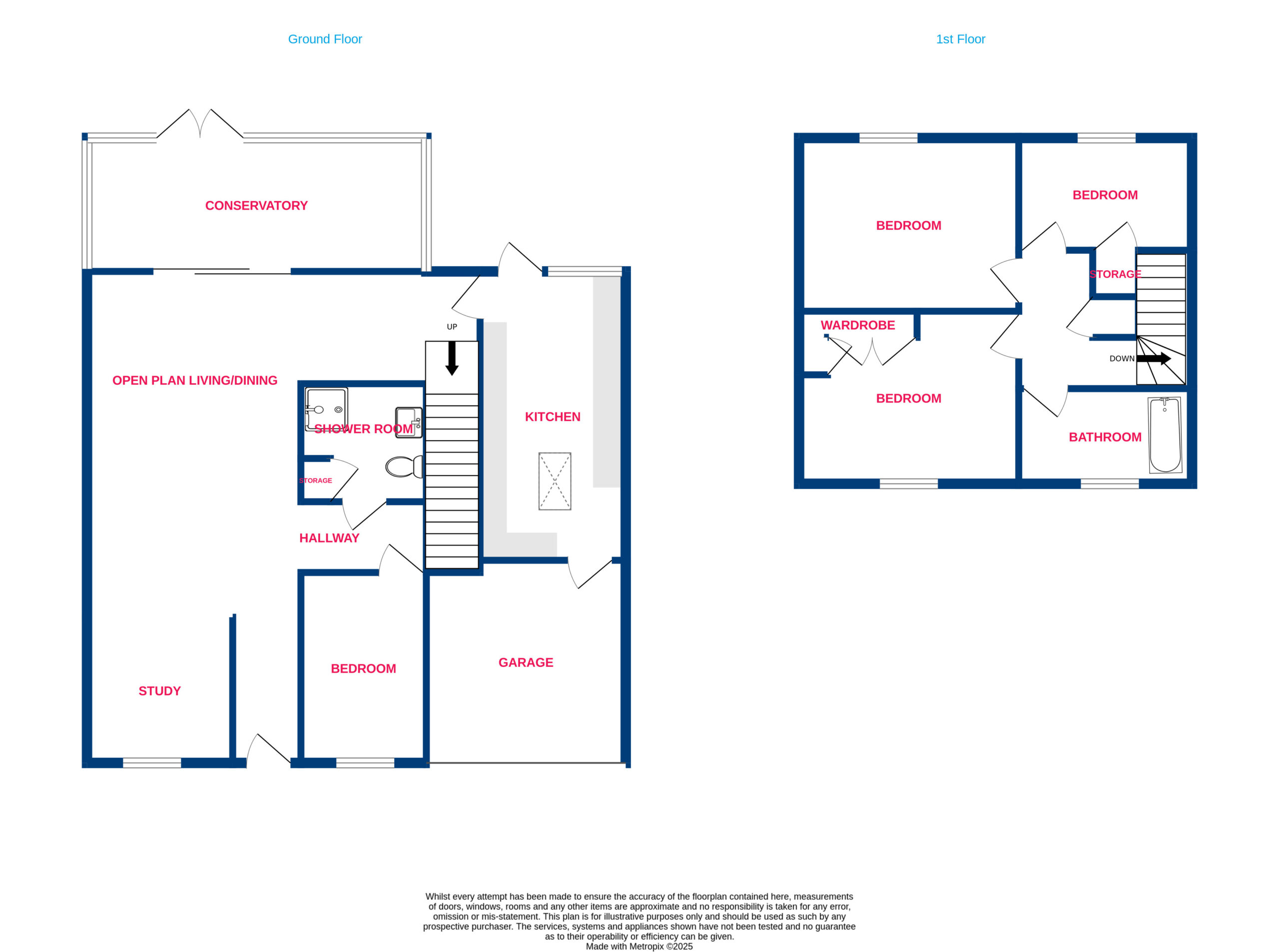 The downstairs accommodation also benefits from a Bedroom, Conservatory, An additional office space measuring 9'3 x 6'8 AND a separate Shower room with Basin.