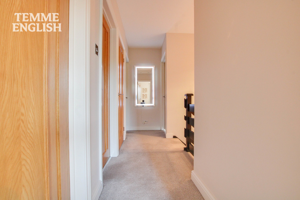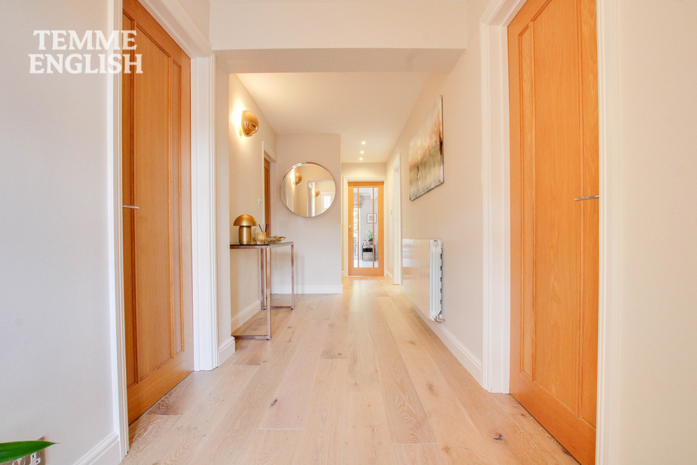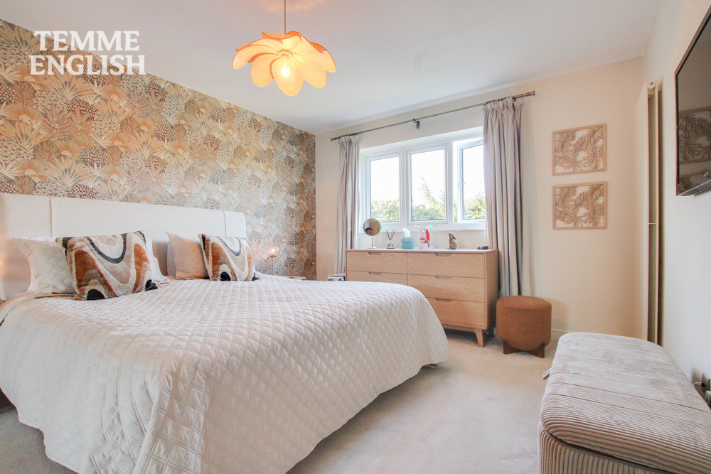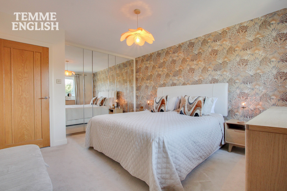 Upstairs, the property continues to impress with four exceptionally well-proportioned double bedrooms, offering comfortable and stylish accommodation for the whole family. The standout principal bedroom benefits from built-in mirrored wardrobes, while a stylish family shower room completes the upstairs. Even the landing space has been thoughtfully designed, contributing to the home’s overall sense of space and elegance.