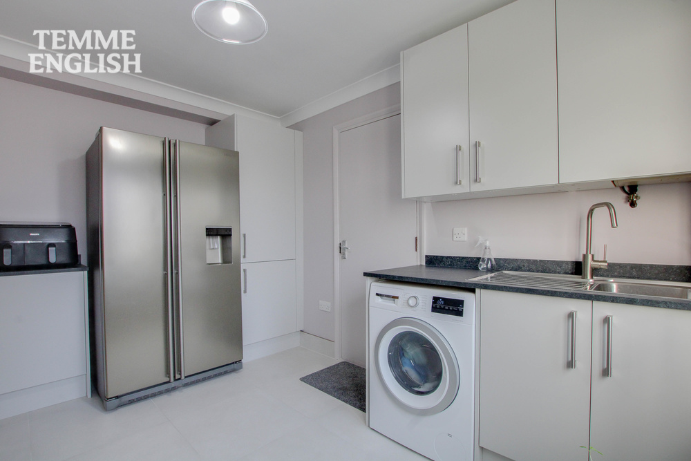 To the rear of the property, the expansive lounge/dining area spans the full width of the home and is beautifully styled, offering an abundance of natural light and a seamless space for relaxing or hosting guests. Completing the ground floor is a sleek and contemporary family bathroom, finished with a fashionable and modern design.