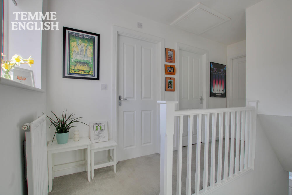 Upstairs hosts three well sized bedrooms and the modern family bathroom. The feature main bedroom boasts built in mirrored wardrobes and a stylish en-suite shower room. The pleasant landing provides a storage cupboard and access to the loft area.